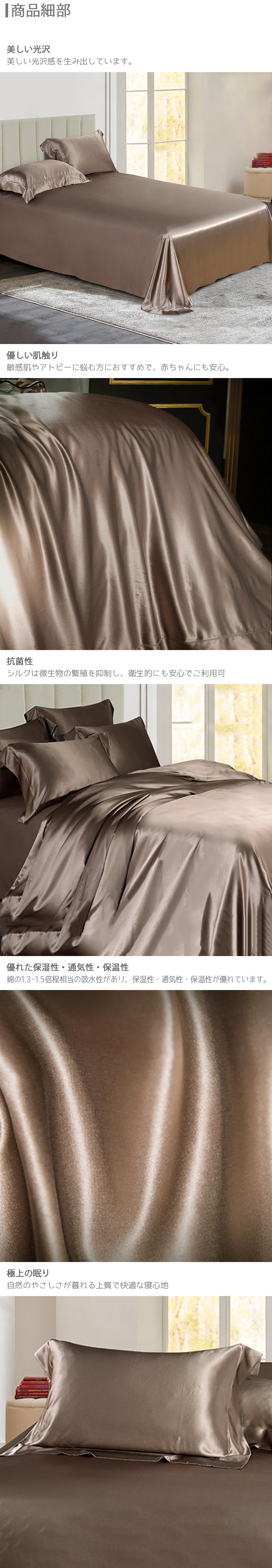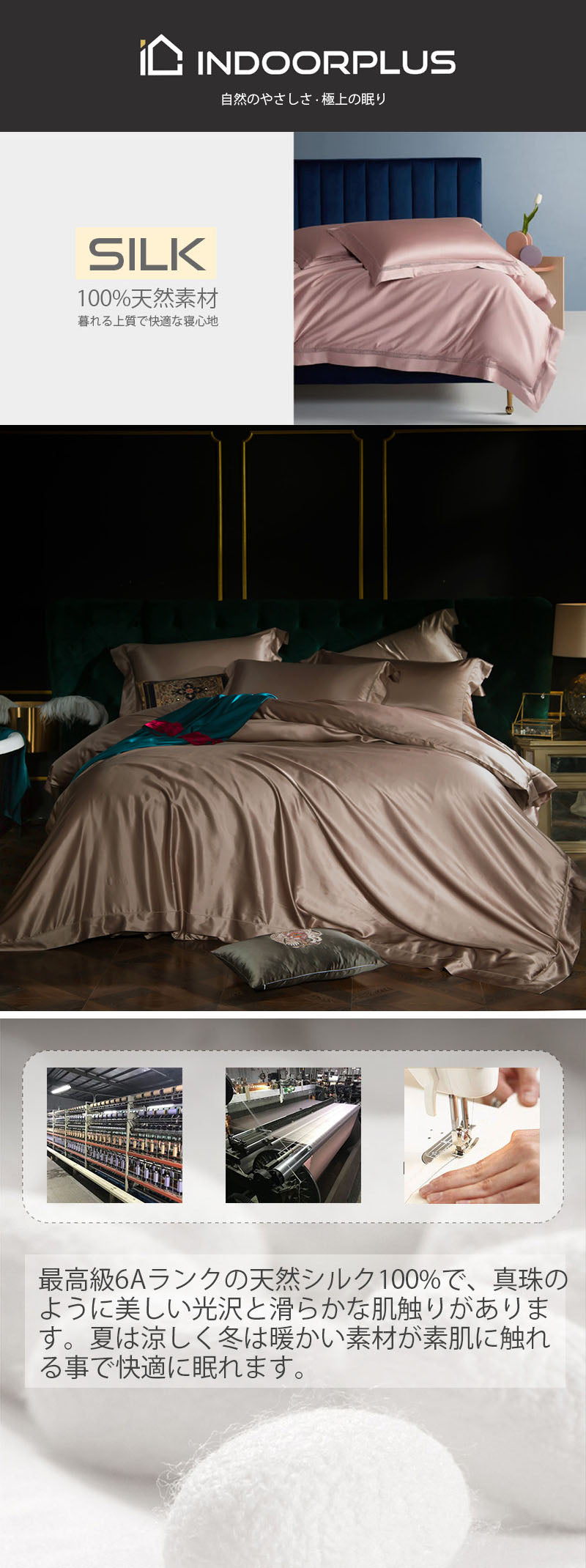 シルクは滑らかな肌触りを実現できる為、他の素材より滑り落ちやすいのが事実ですが、弊社のシルク製品の縁がずれ防止のデザインで丁寧に縫製され、ベッドから滑り落ちません。カバー内側にずれ防止の紐がついている為、布団が泳いでいる心配する必要がございません。