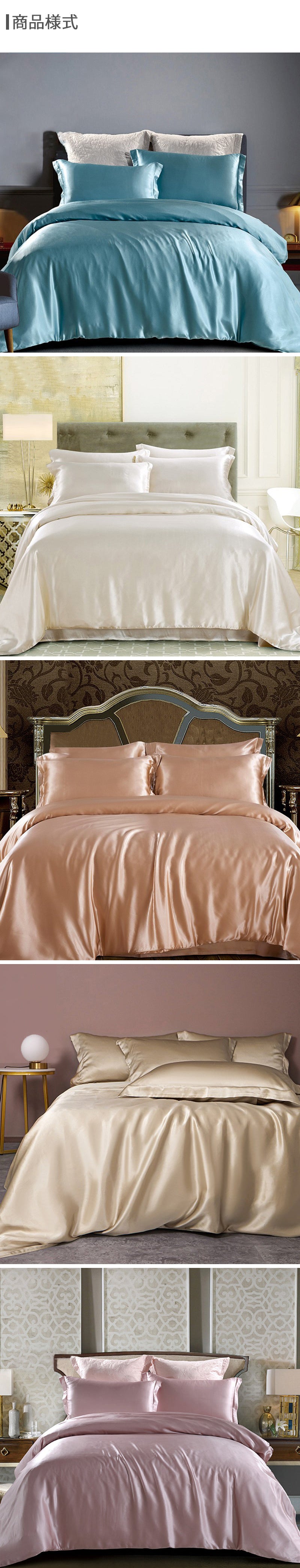 一般的に使用される寝具製品はすべて、サテン織りの構造によって決定されるプレーンクレープサテンテキスタイル技術で作られています。サテン織りの構造は、片側は滑らかで、もう一方は滑らかではない特徴を有しております。