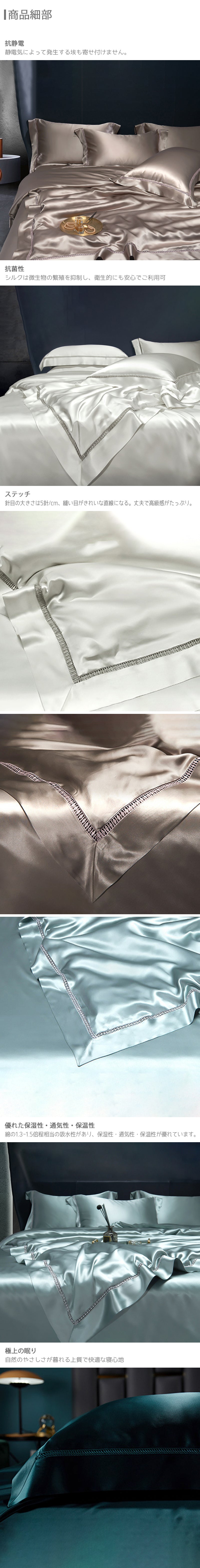 シルクは滑らかな肌触りを実現できる為、他の素材より滑り落ちやすいのが事実ですが、弊社のシルク製品の縁がずれ防止のデザインで丁寧に縫製され、ベッドから滑り落ちません。カバー内側にずれ防止の紐がついている為、布団が泳いでいる心配する必要がございません。