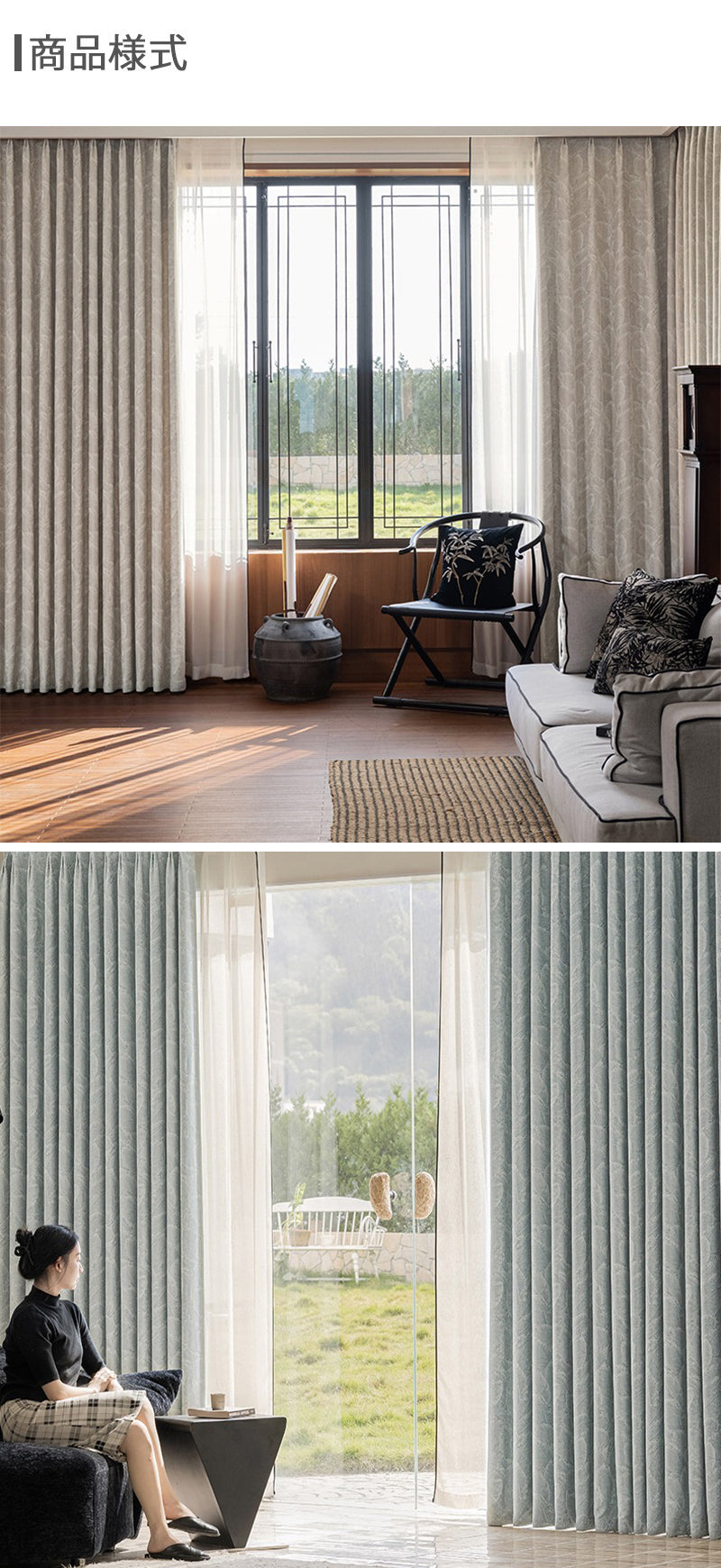 2点目、外観的に美しいこと。 特に窓が2メートル未満などの比較的小さい場合は、2倍ヒダカーテンを選択することをお勧めします。2倍ヒダカーテンは、立体効果が高く、カーテンが単調に見えないようにします。逆にカーテンが4メートルを超える場合は、1.5〜1.8倍ヒダを選んで頂いくこともお勧めします。
