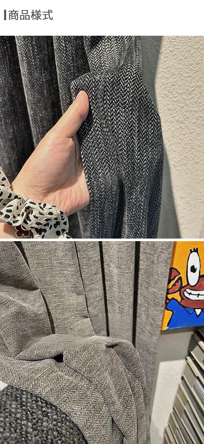 ※2 シワ・折れ目は初期不良品対象と認められかねます。カーテンは長い運輸プロセスにて折りたたんで梱包され、シワ・折れ目が出ることもしばしば発生します。ご理解の程お願いします。基本的には装着した後自然に消えますが、アイロンをかけて取り除くことも可能です。