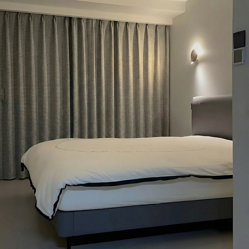 音に敏感な方は、遮光率の高いフランネル(ベルベット)カーテンをお勧めします。同じ遮光率で光沢のあるカーテンに比べると、比較的に吸音性が高いわけです。静かで快適な睡眠環境が作られますので、是非ご検討ください。