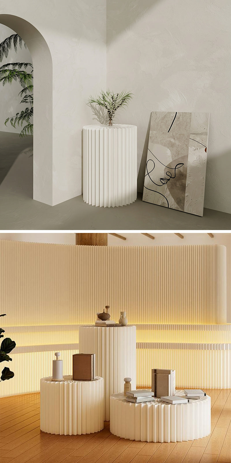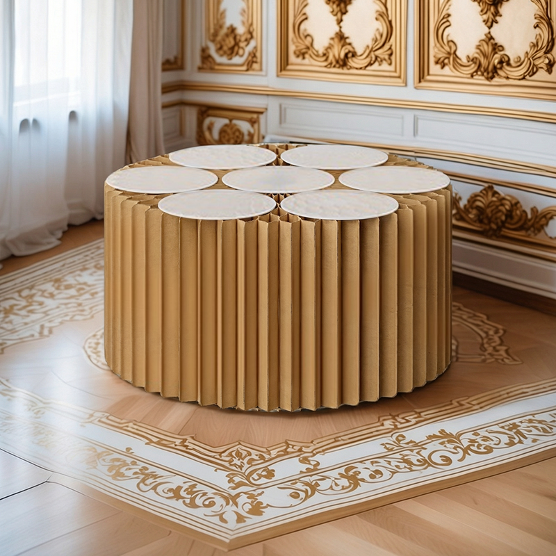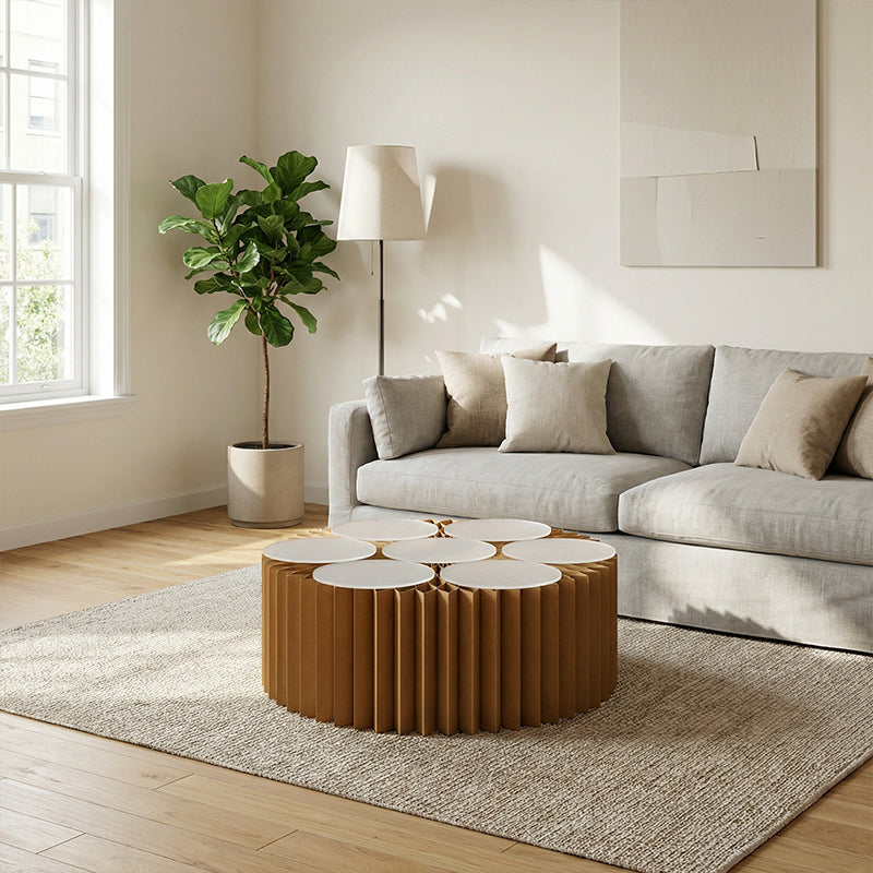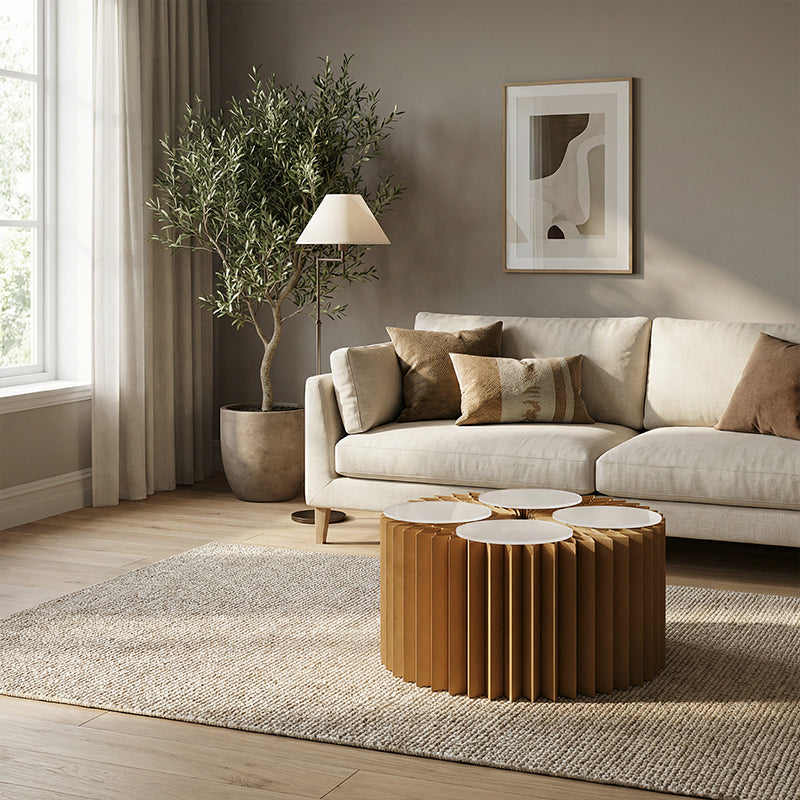 美しい曲線とプリーツデザインが印象的なローテーブルは、軽やかでありながら上質感あふれる佇まいが魅力の一台。