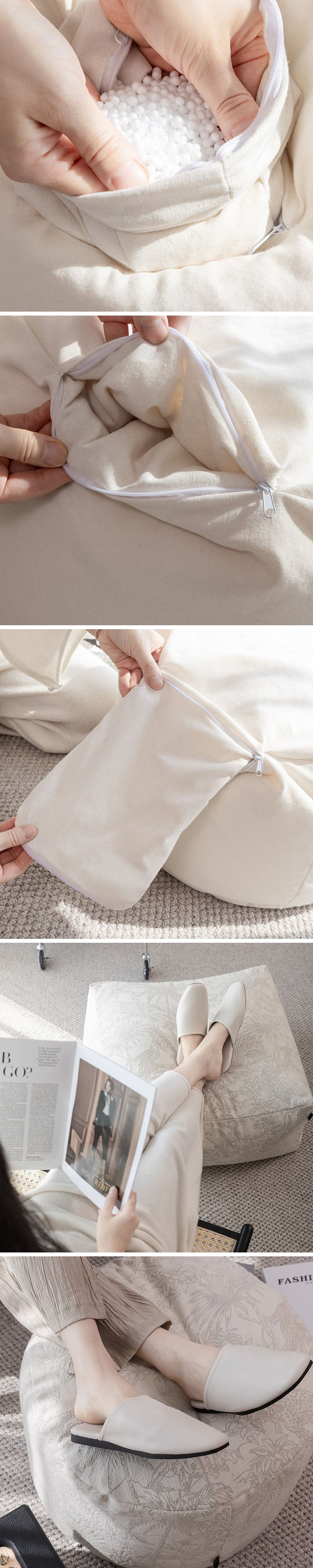 内部にはEPP粒子が充填されており、柔軟性とサポート力に優れ、清潔で快適な状態を保ちながら、長期間愛用できる設計です。