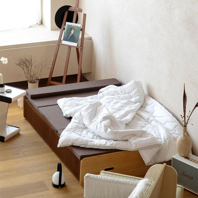 マットレスを折り畳めば、来客用の簡易ソファに早変わりし、急な来訪時の臨時ベッドとしても大活躍。