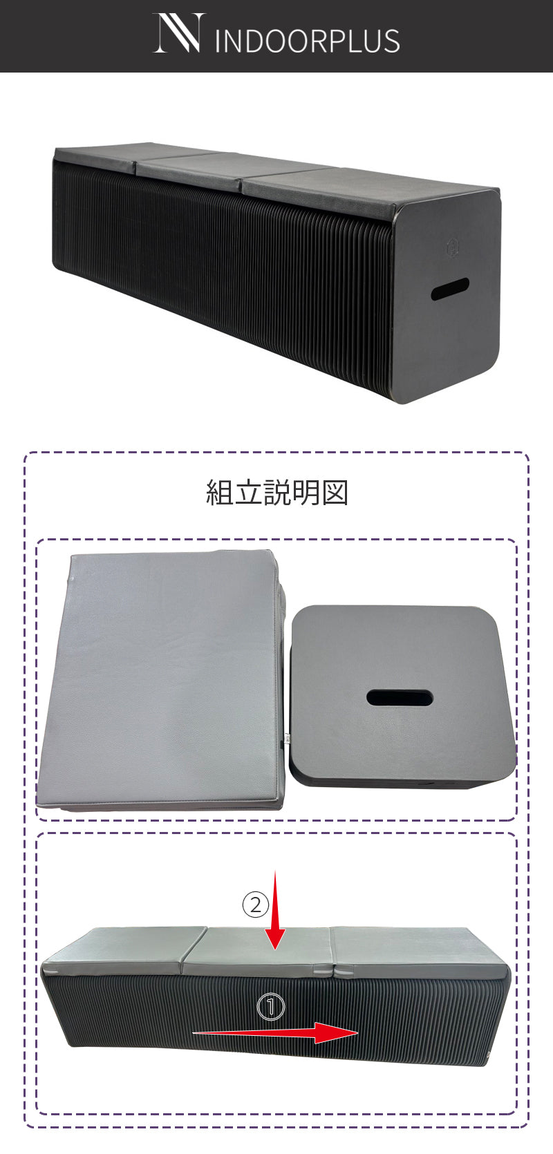一人でも簡単に展開でき、急な来客時の臨時ベンチやサロン・待合室などの商用空間にも対応します。