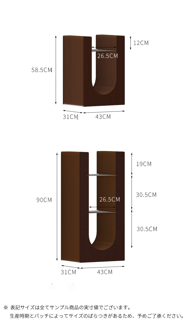 上部はアーチ型のディスプレイ面、下部はU字型の陳列棚として使用でき、両面に使えるデザインが魅力です。