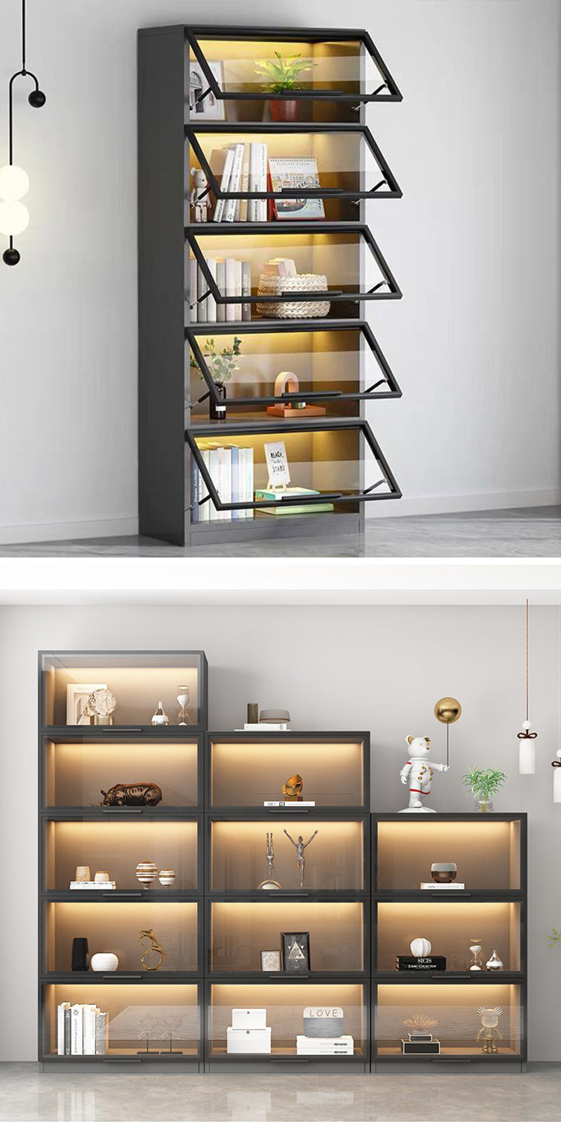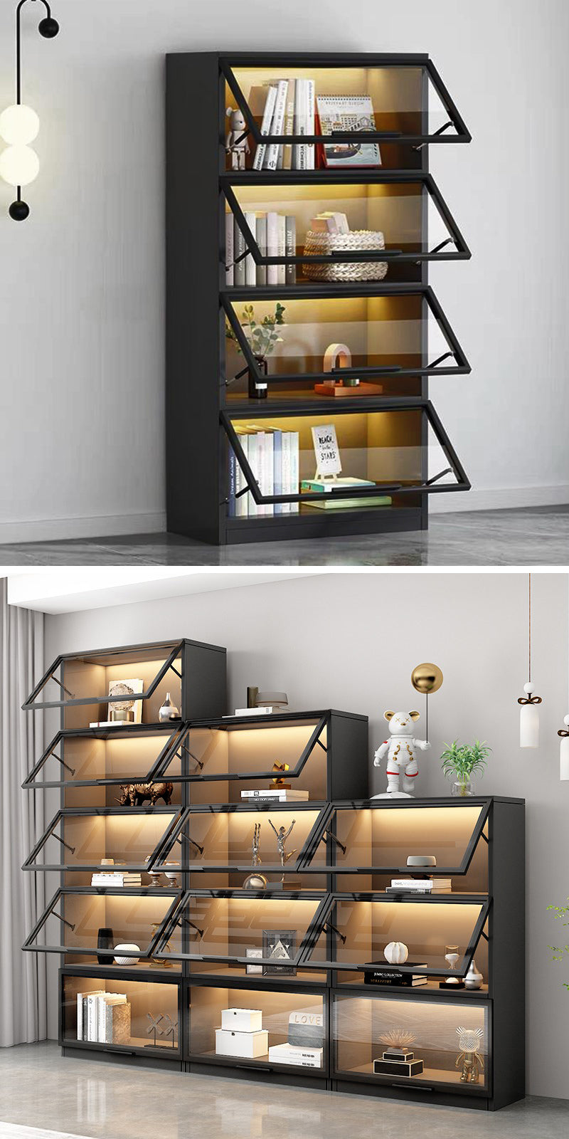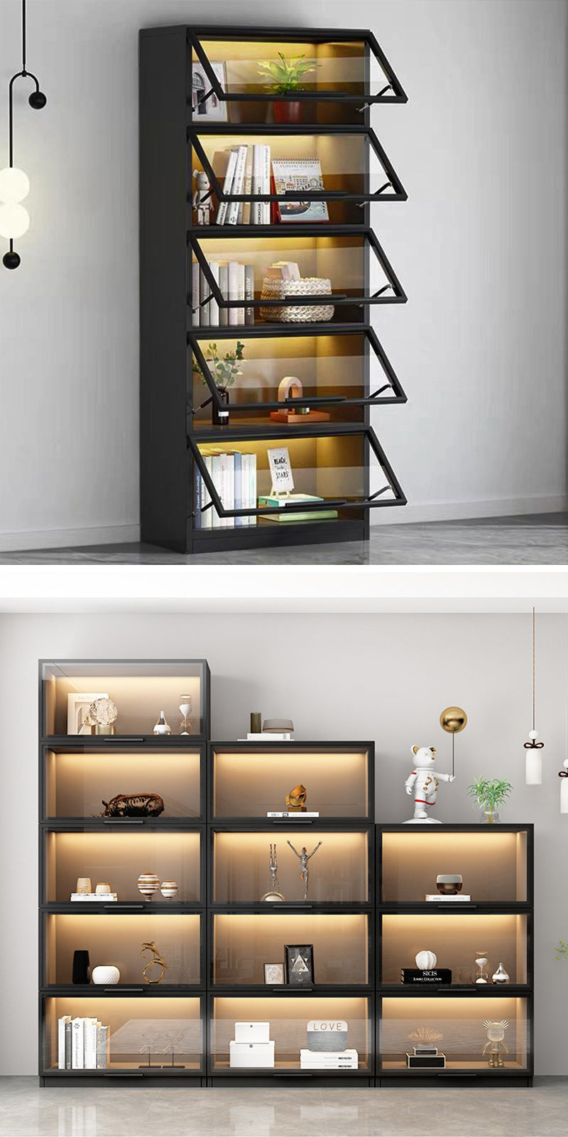 リビングルーム、寝室、玄関、オフィスでも多様な場所で収納・ディスプレー用としてピッタリです。