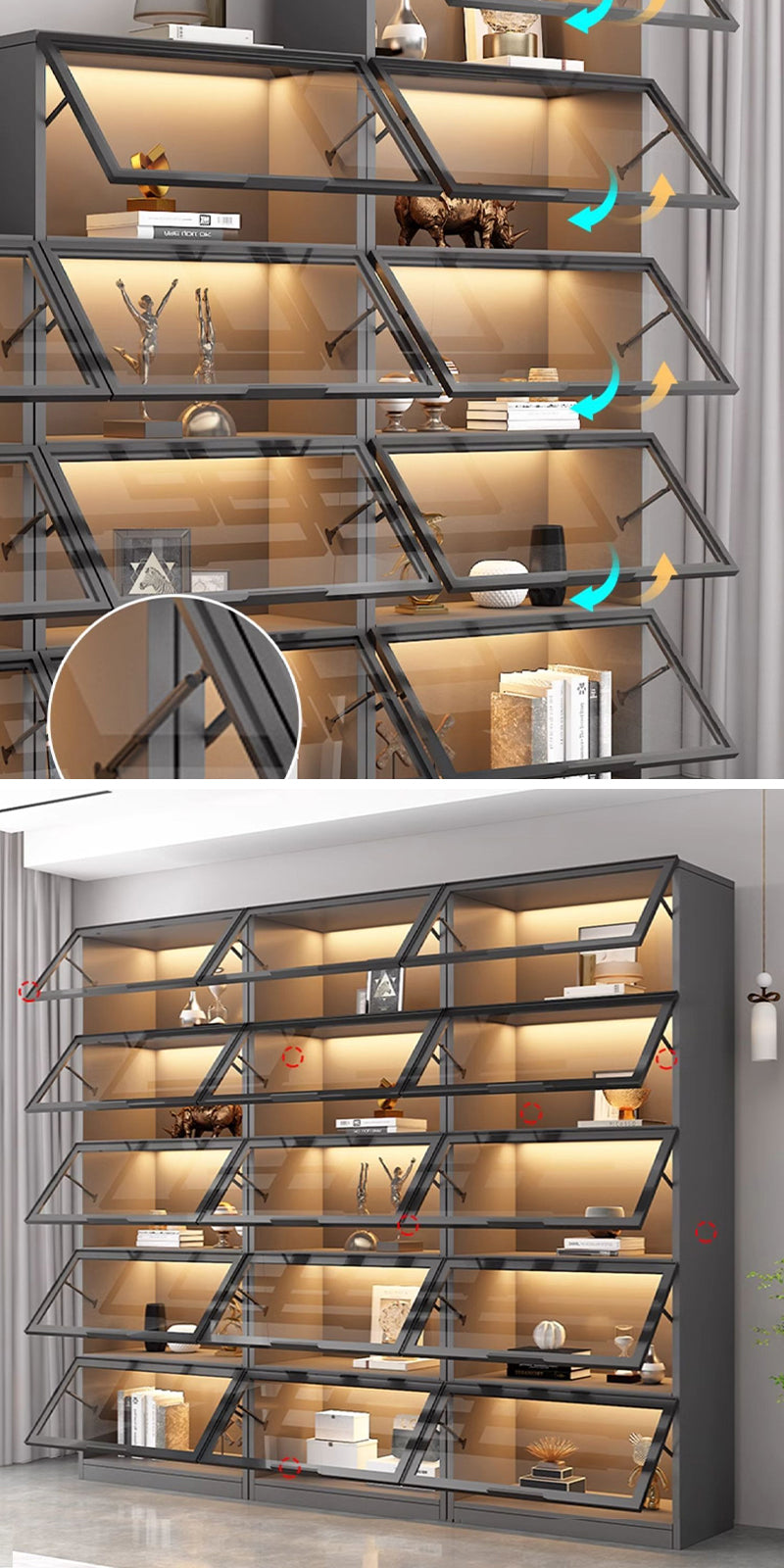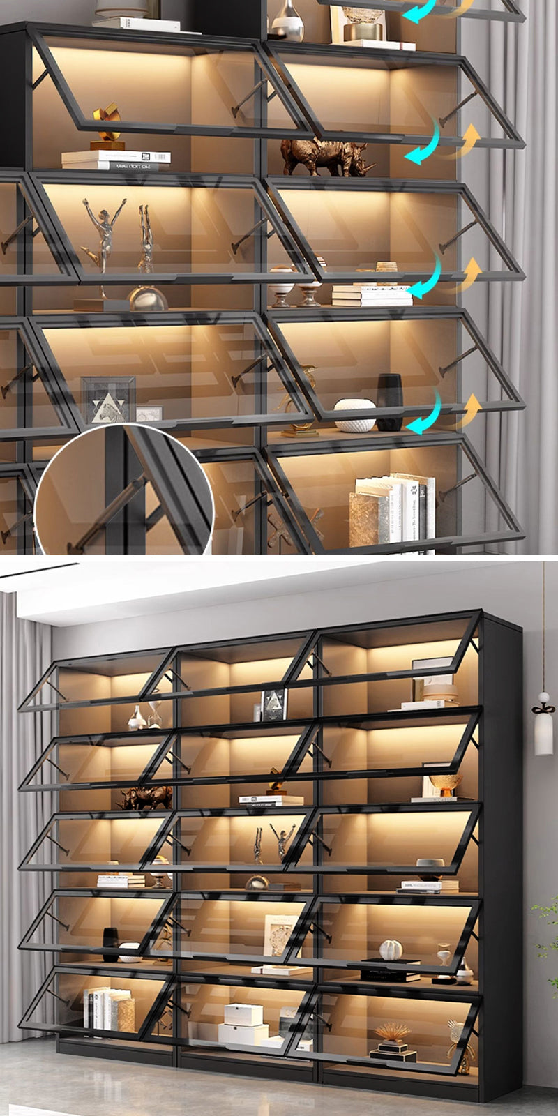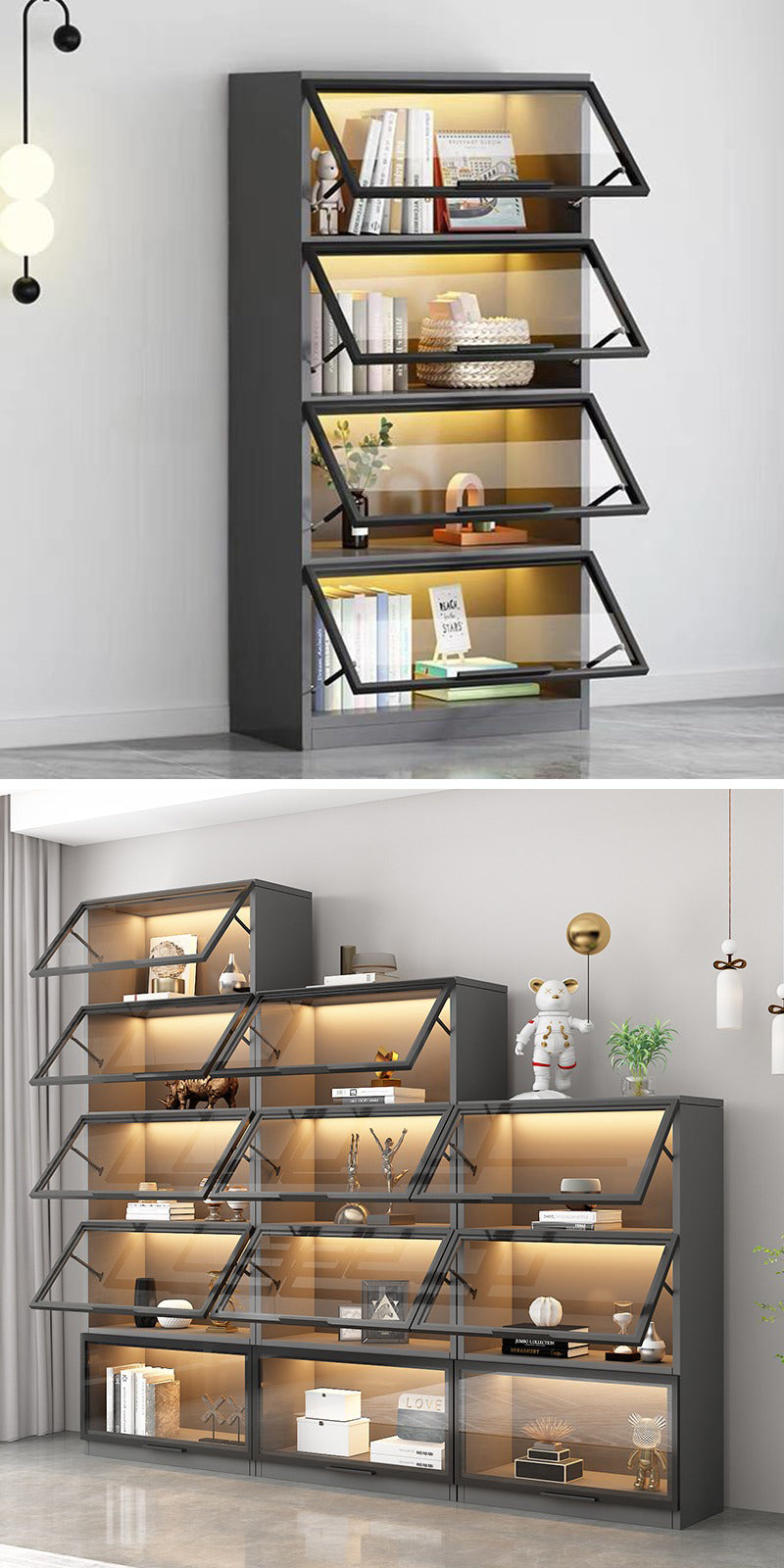 リビングルーム、寝室、玄関、オフィスでも多様な場所で収納・ディスプレー用としてピッタリです。