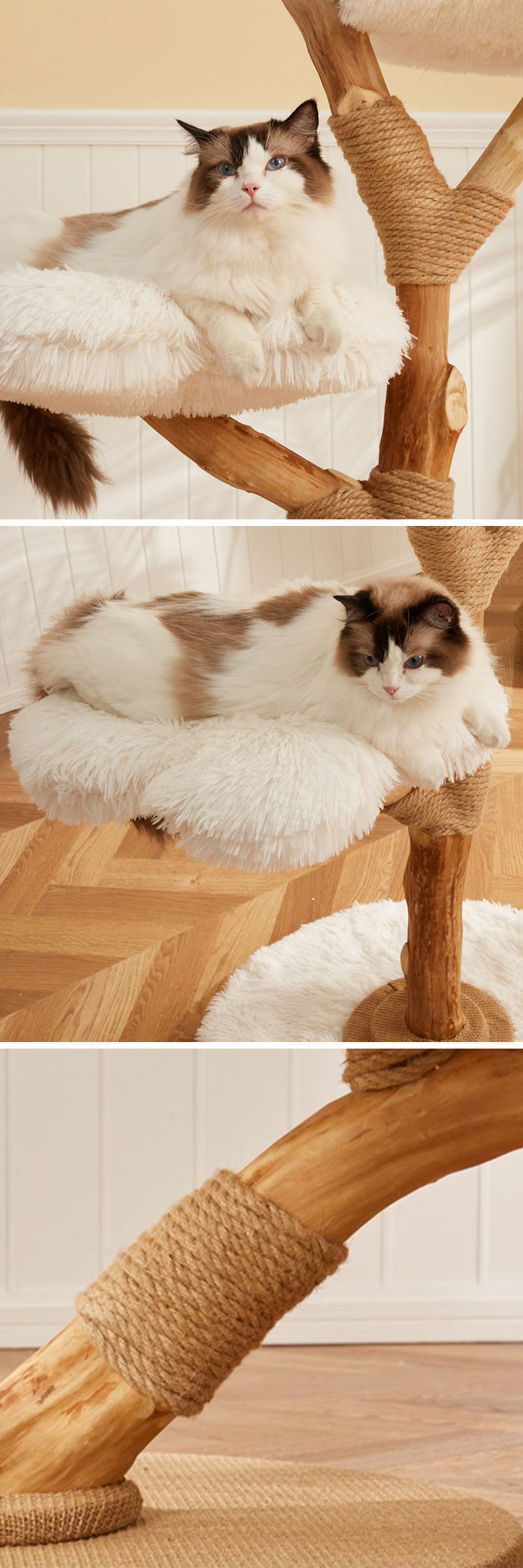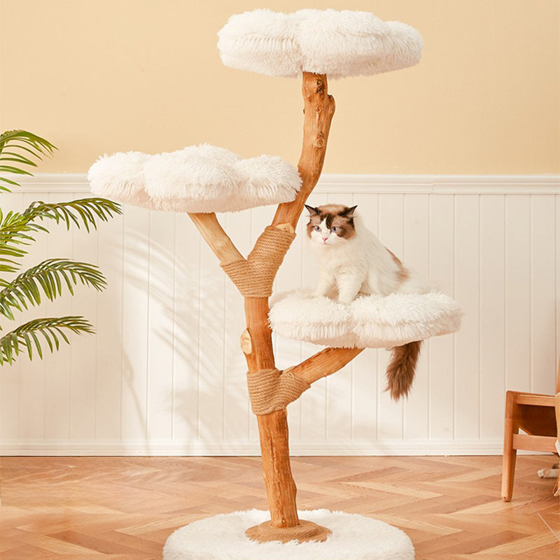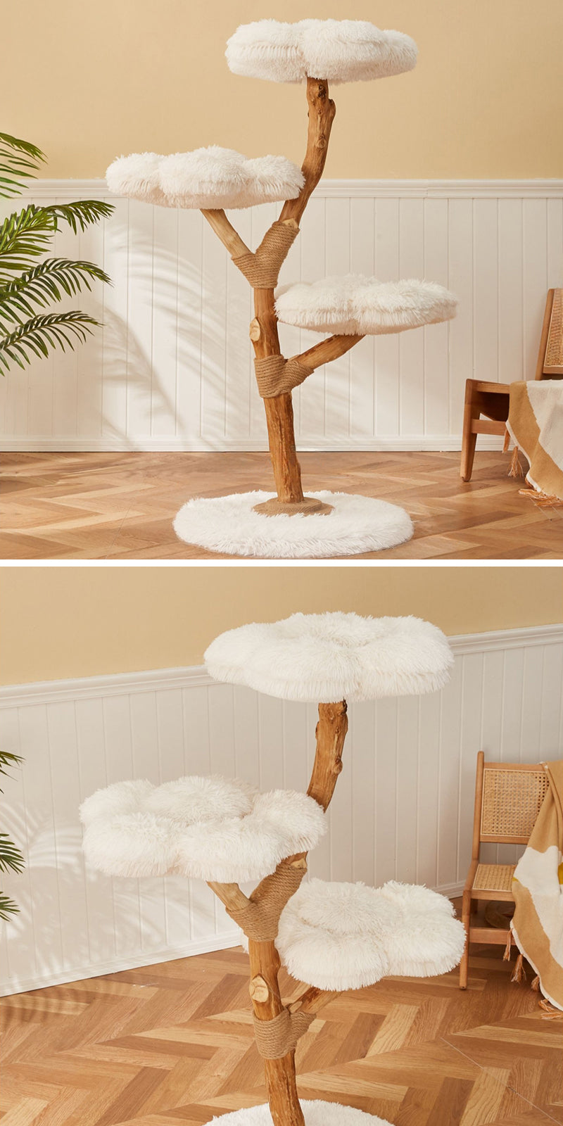 無垢材を使用したこのキャットタワーは、猫のための豪華な遊び場を提供します。