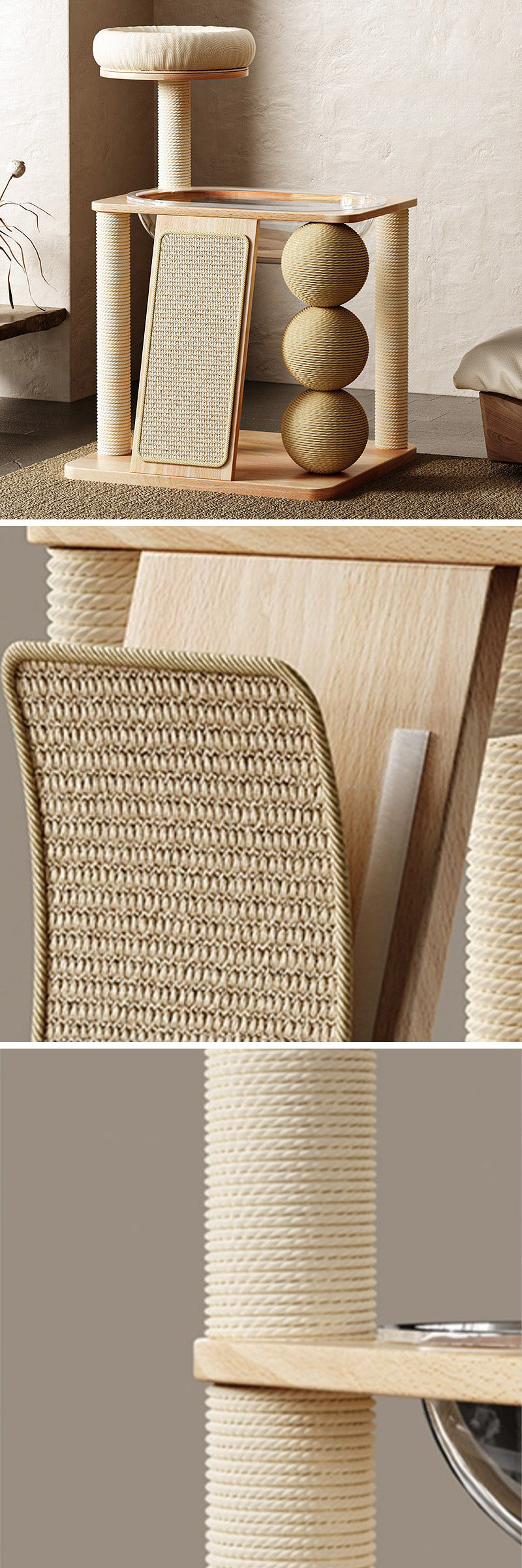 集成材とサイザル麻を組み合わせた耐久性に優れた造りで、猫の爪とぎや登り降りに最適です。