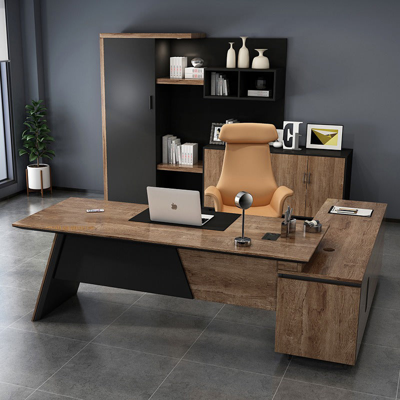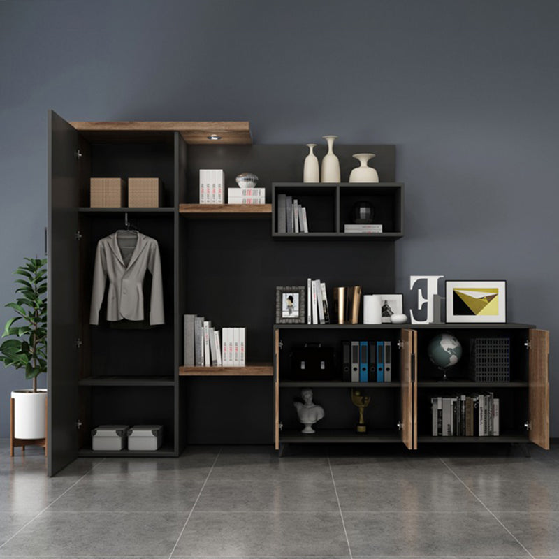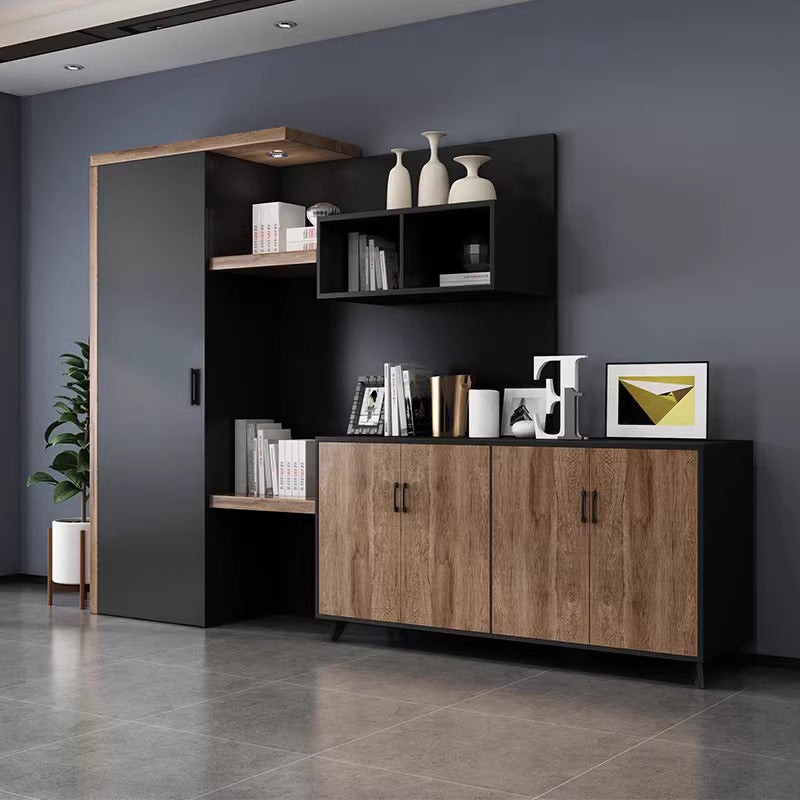 洗練されたデザインと機能性を兼ね備えた書棚・キャビネットセットです。深いウォールナットとブラックのコントラストが、シックでモダンな雰囲気を演出します。