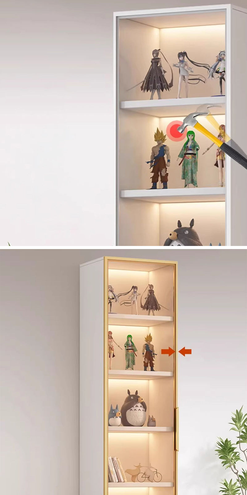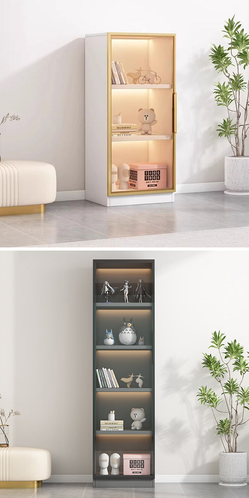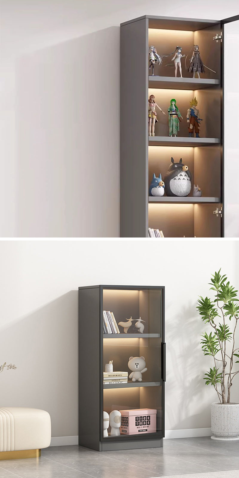 透明なガラス扉が、収納されているアイテムを美しく際立たせ、ディスプレイ効果も抜群です。