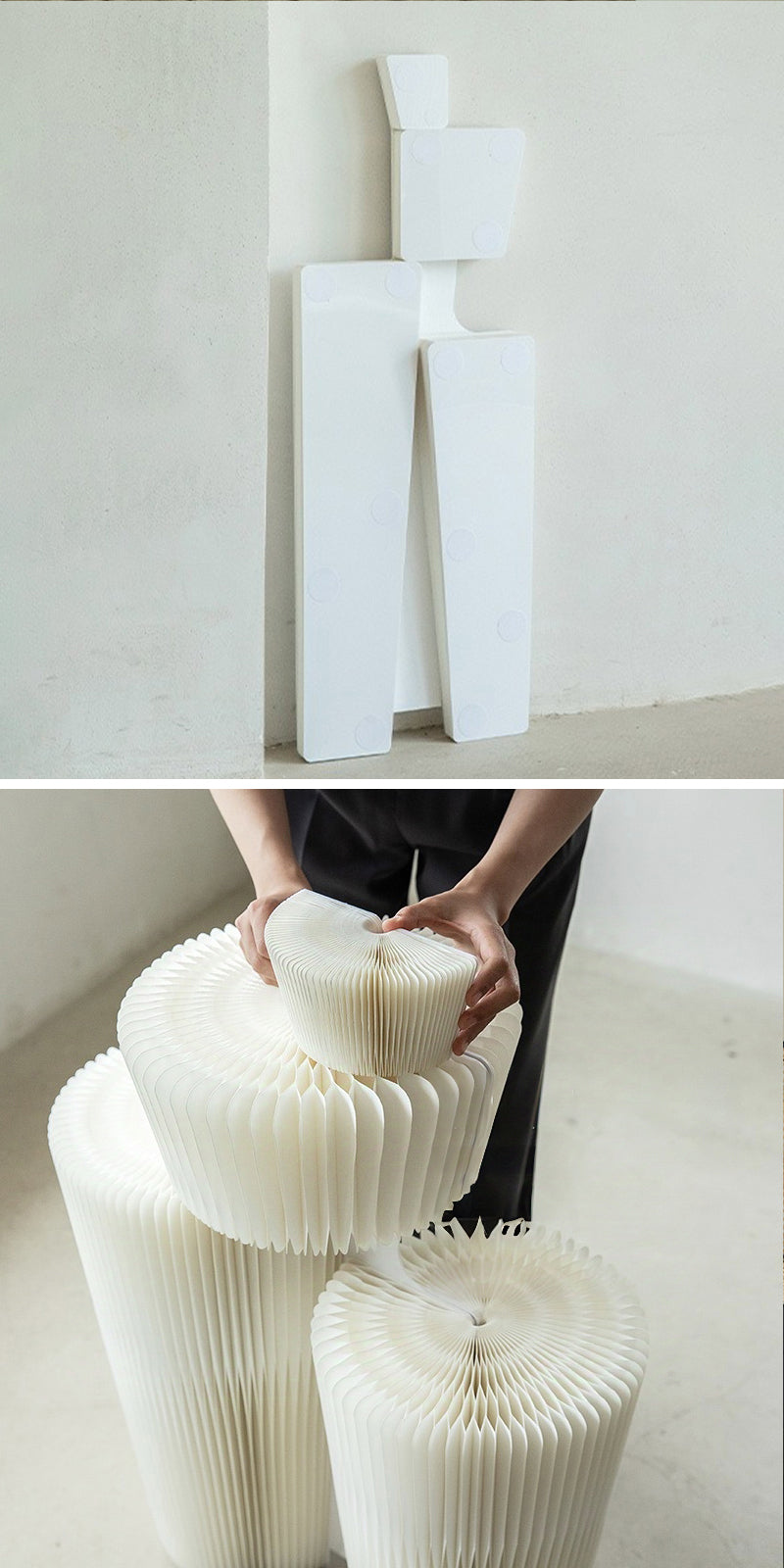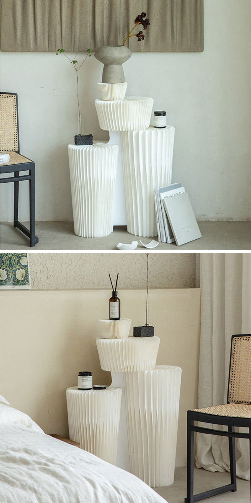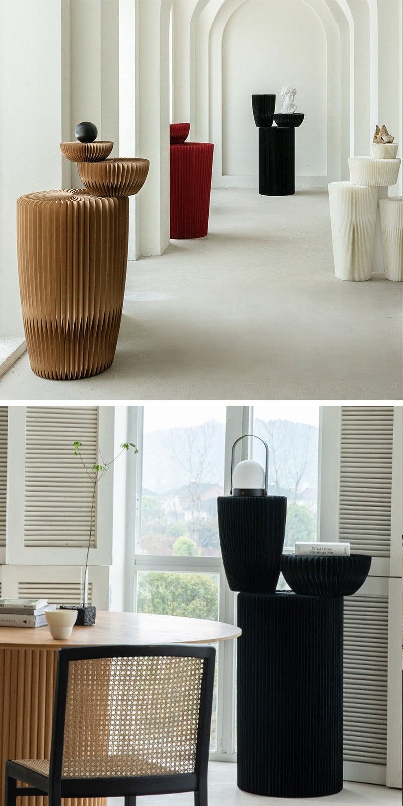 クラフト紙とアクリルで構成されたサイドテーブルは、
