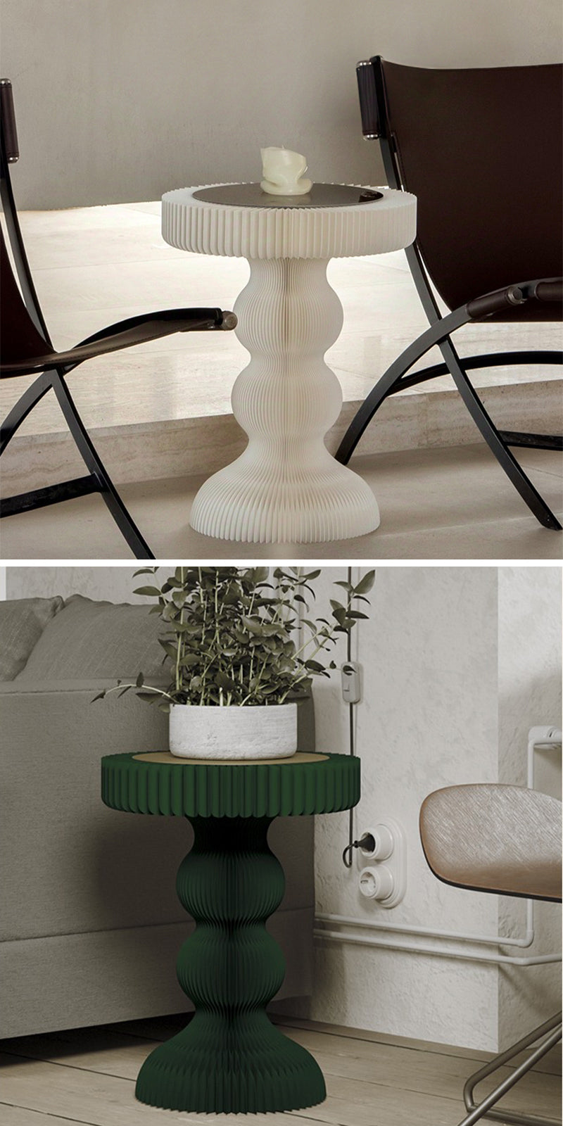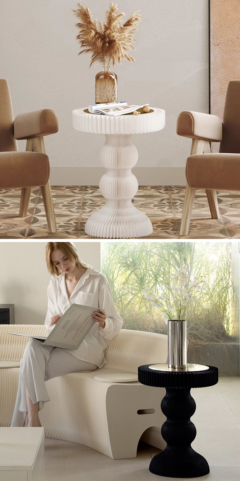 モダンなフォルムと優れた実用性を兼ね備えたサイドテーブル。