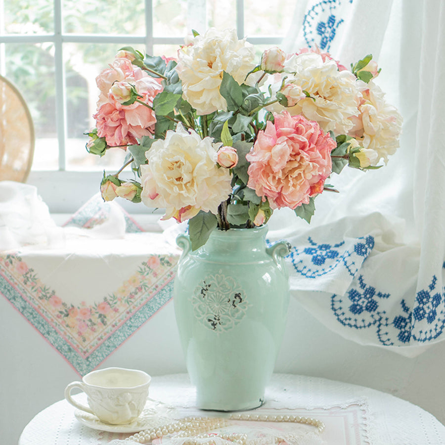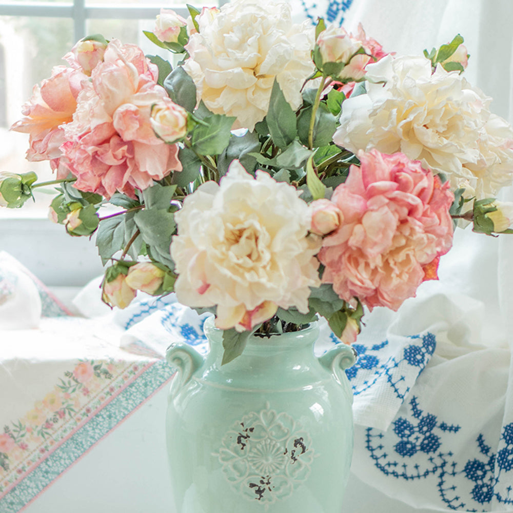 花びらのフリルやしわまで細部までリアルに再現され、生花のような鮮やかな色合いで染められています。茎や葉にいたるまで、本物に近い仕上がりで、自然な雰囲気を演出します。これらの花を用いて、空間や瞬間に優雅でエレガントなアクセントを加えることができます。