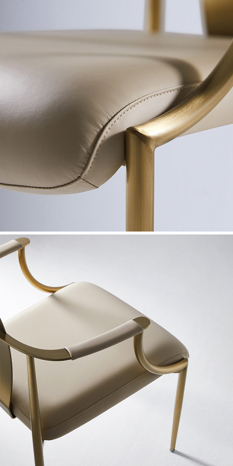このチェアは、スタイリッシュな細身の脚が特徴で、カラーやデザインに調和する美しいコーティングが施されています。