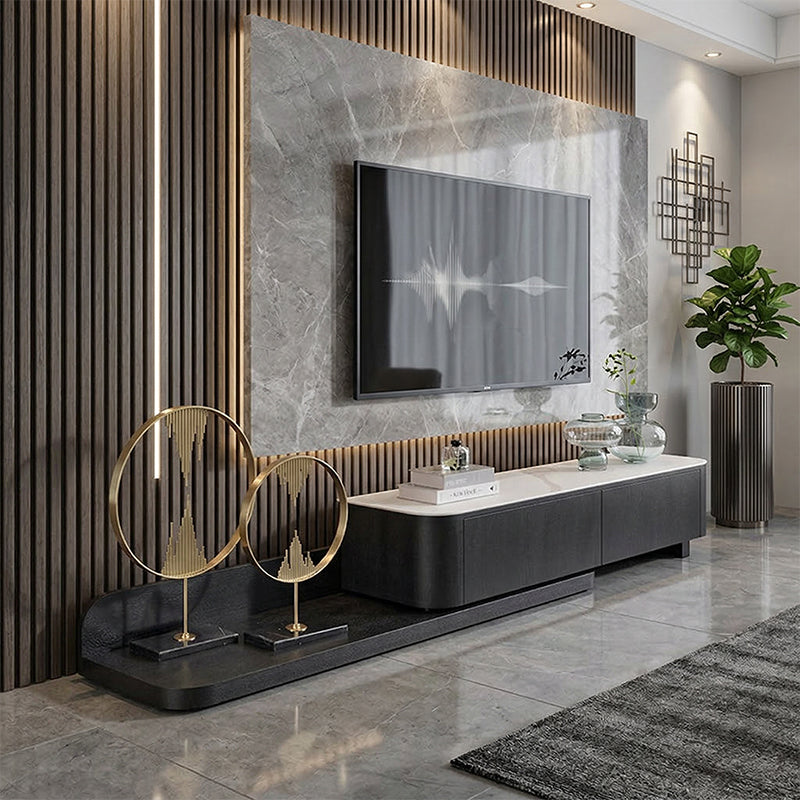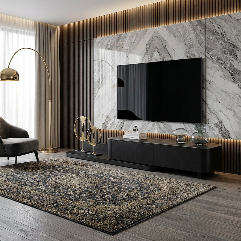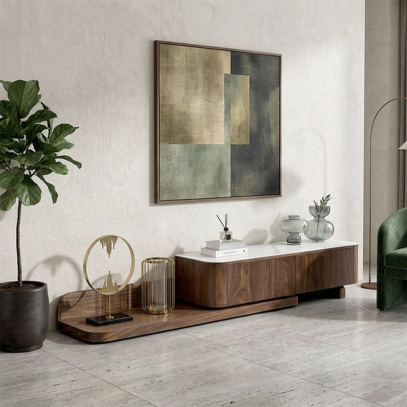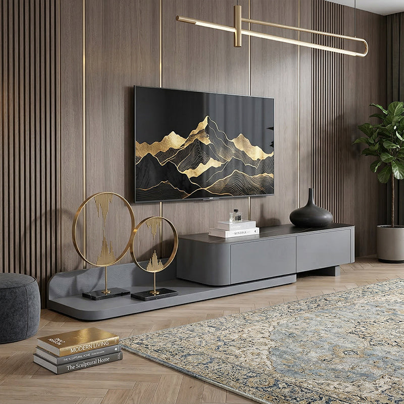 HDF高密度繊維板を贅沢に使用し、シンプルながらも重厚感あるデザインのテレビボード。