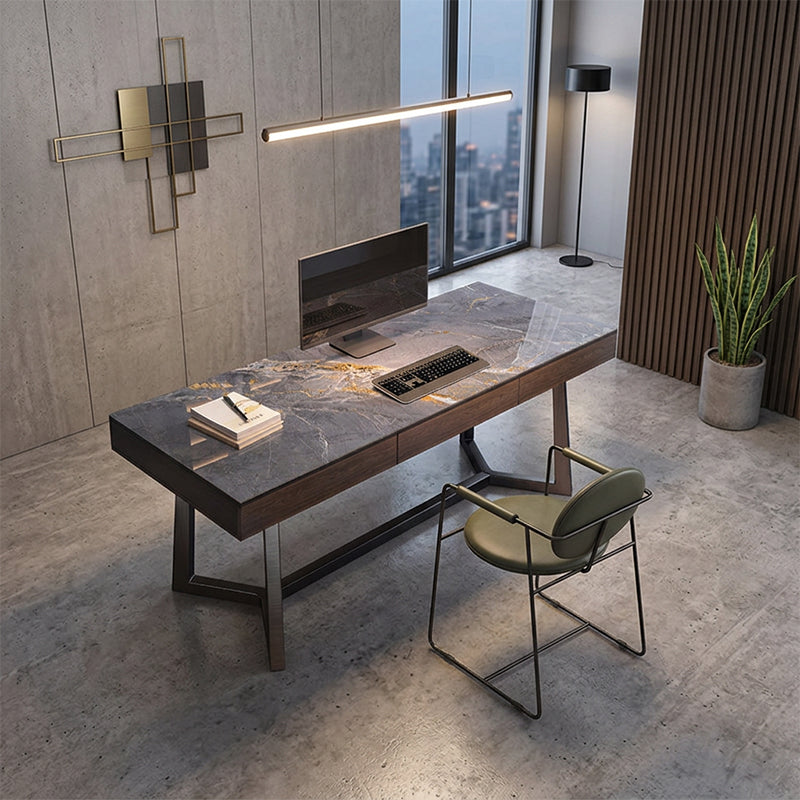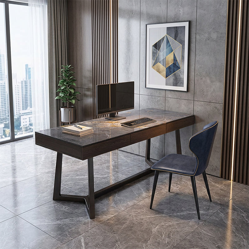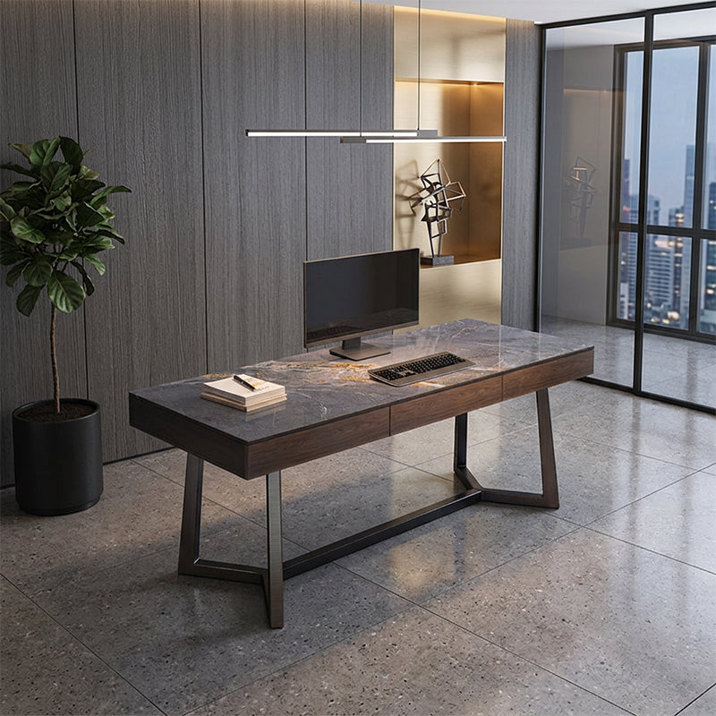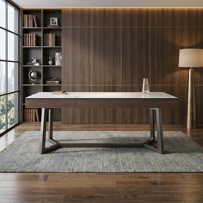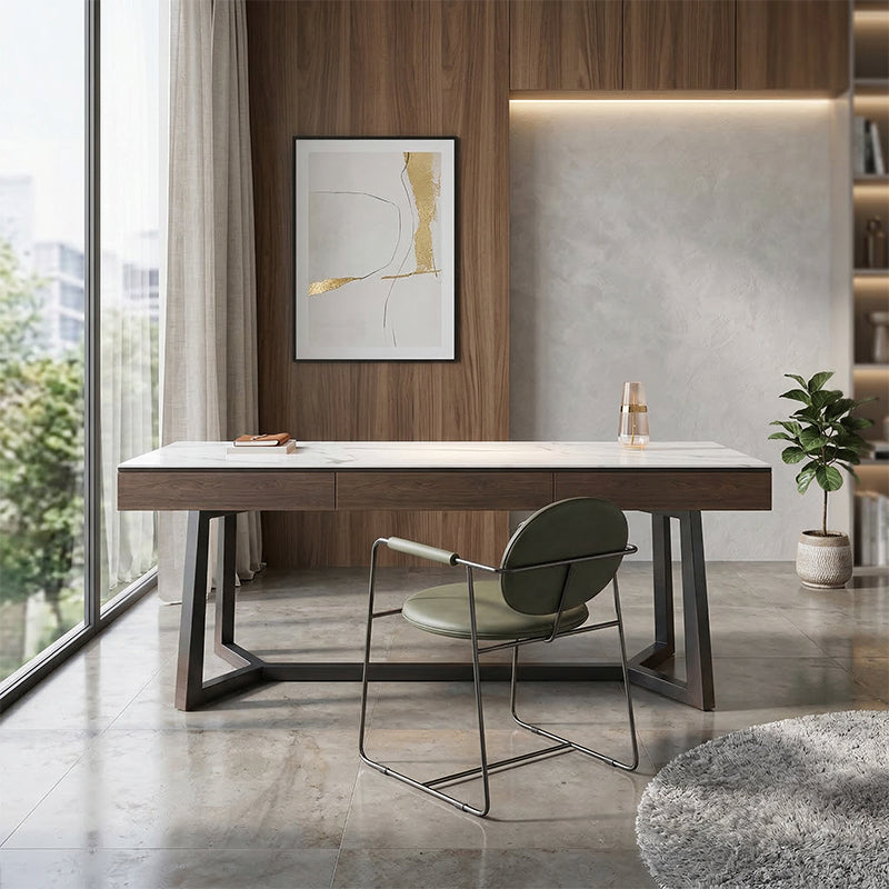 高級シントレードストーン(セラミックの一種)を使用した天板と、炭素鋼を使用した脚部を採用しています。
