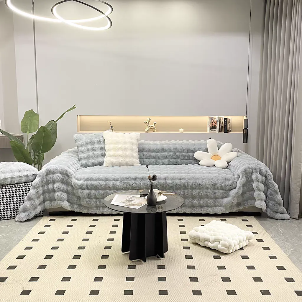 ふわふわ感のあるソファーカバーは、モダンでシンプルなインテリアにおいて、暖かみを与え、快適さをプラスします。部屋に暖かさと華やかさを加え、女子部屋や子供のプレイエリアなどに活気と温かさをもたらし、居心地の良い空間を作り出します。