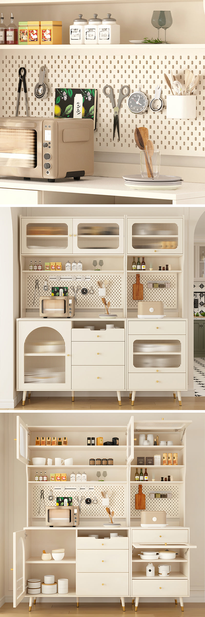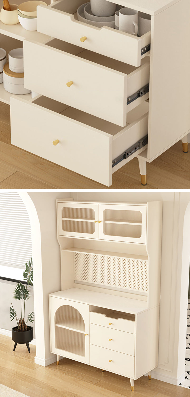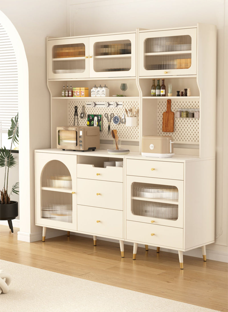 美しさとデザインの優雅さが際立つ、高品質の収納キャビネットです。ボディ部分には集成材を使用し、温かみのある質感と独特の木目が特徴です。