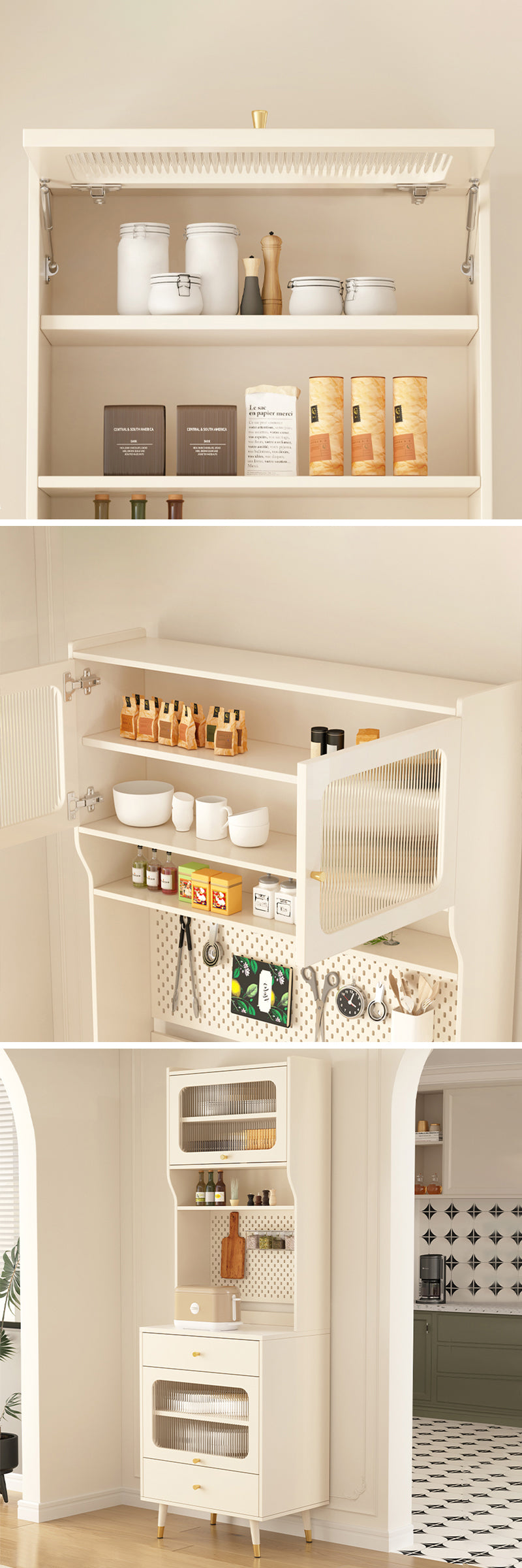 キャビネットの形状は、シンプルでありながらも機能的であり、引き出しや開閉式の扉が付いており、さまざまなアイテムを整理整頓して収納することができます。