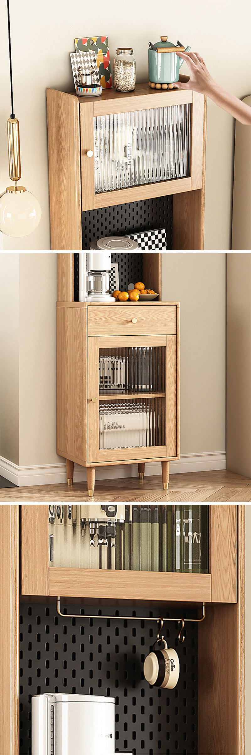 ガラス部分は、中に収納したアイテムを一目で確認でき、必要なものをスムーズに取り出すことができます。