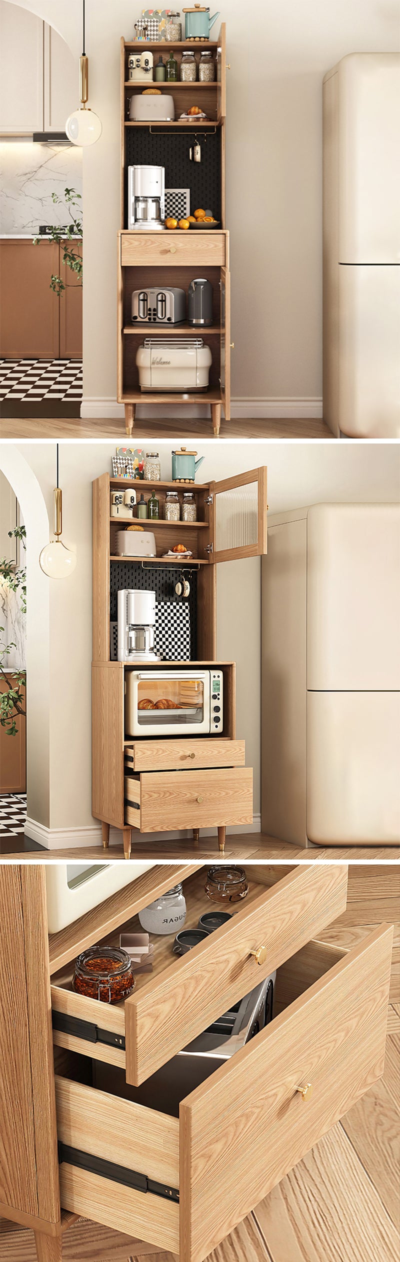 キッチン用品やリビングの小物など、さまざまなアイテムを収納するのに最適なスペースを提供します。