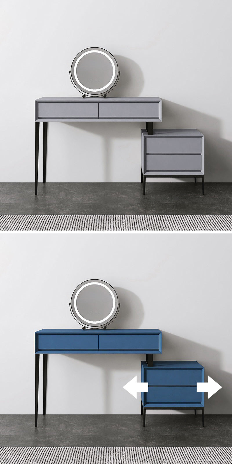 伸縮可能なキャビネットの設計は、居室の大きさに応じて柔軟に調整でき、椅子は化粧台の下に収納でき、余分な空間を占有しません。