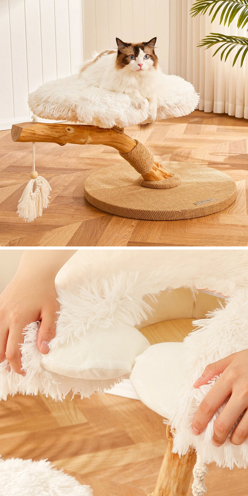 ぶら下がっているタッセルは猫の遊び心をくすぐり、活動的な時間を提供します。
