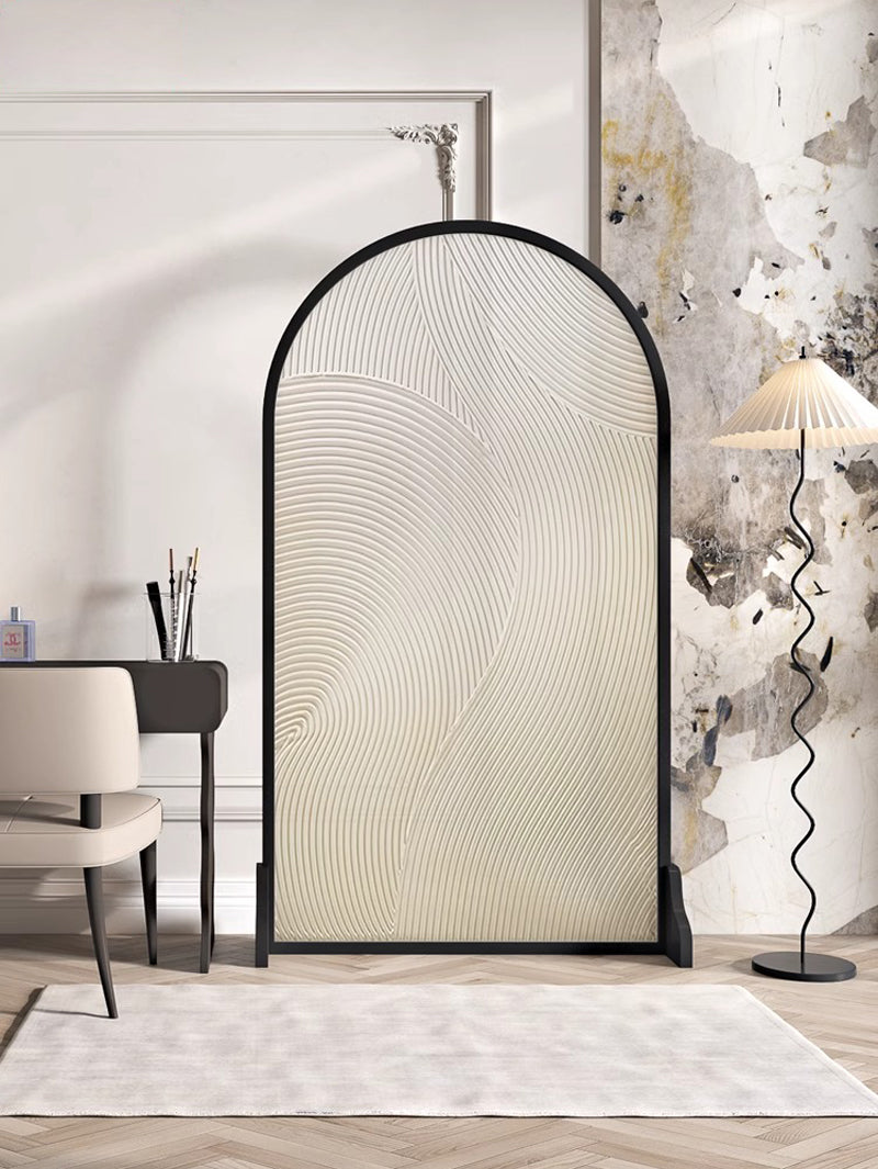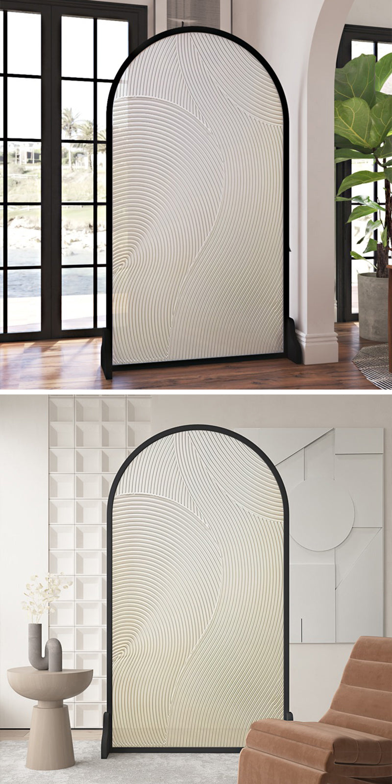 このパーテーションは、空間に柔らかい光と影を作り出し、リラックスした雰囲気を提供します。