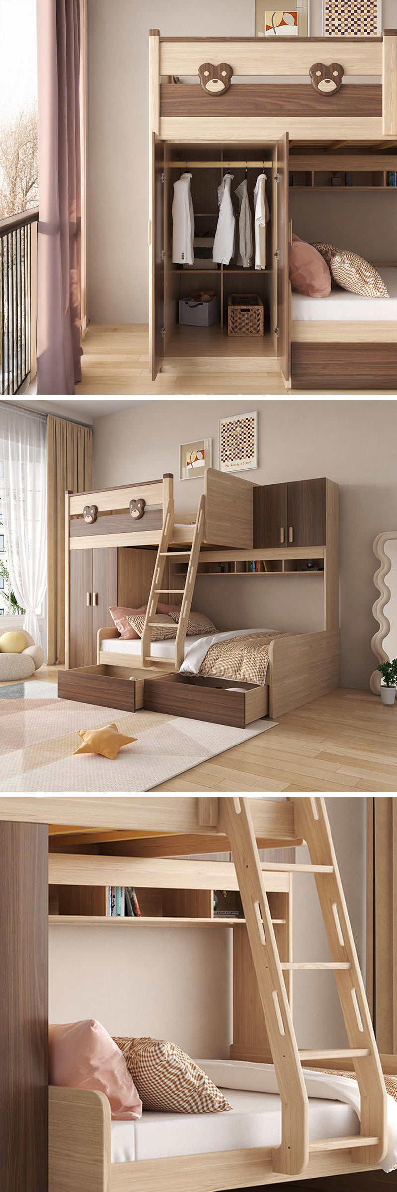 ベッドの上下には可愛らしいクマの顔がデザインされており、お子様のお部屋にぴったりの愛らしいアクセントとなっています。