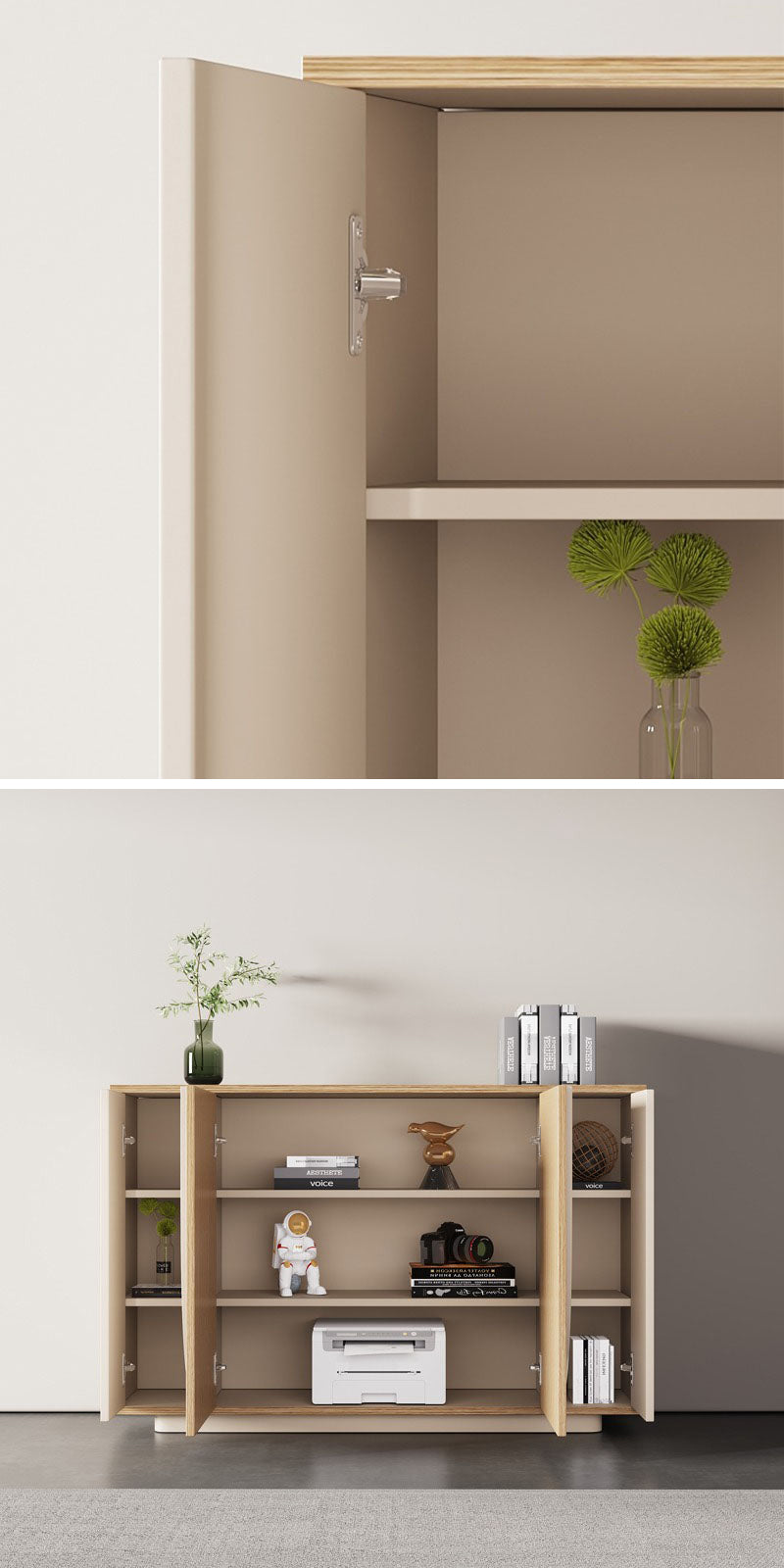 扉付きの設計により、収納スペースを見た目すっきりと整理整頓でき、広々とした内部は書類や雑貨の収納に最適です。