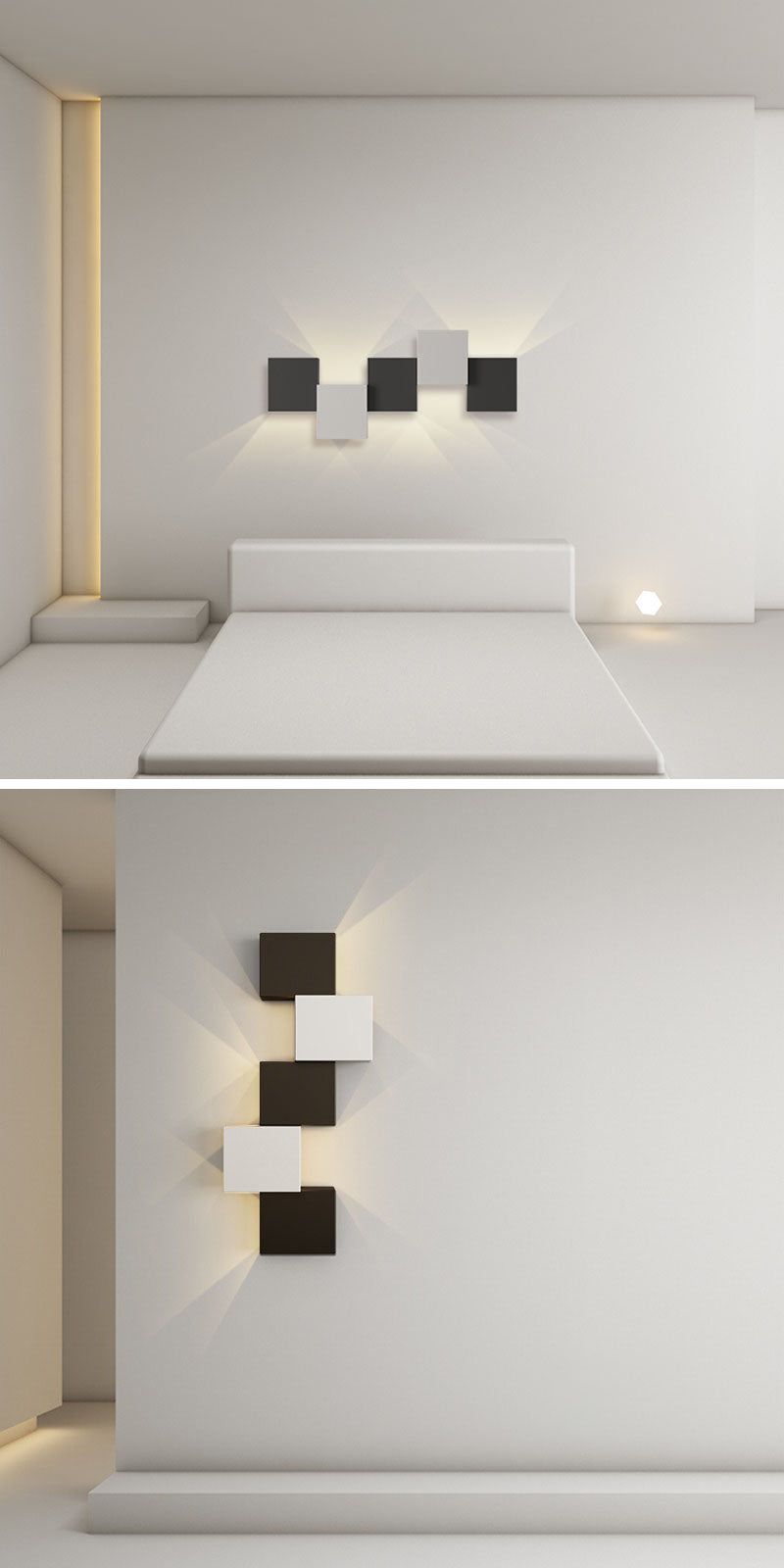 黒と白のブロックが交互に配置されており、それぞれのブロックから漏れる光が美しい陰影を壁面に描き出します。