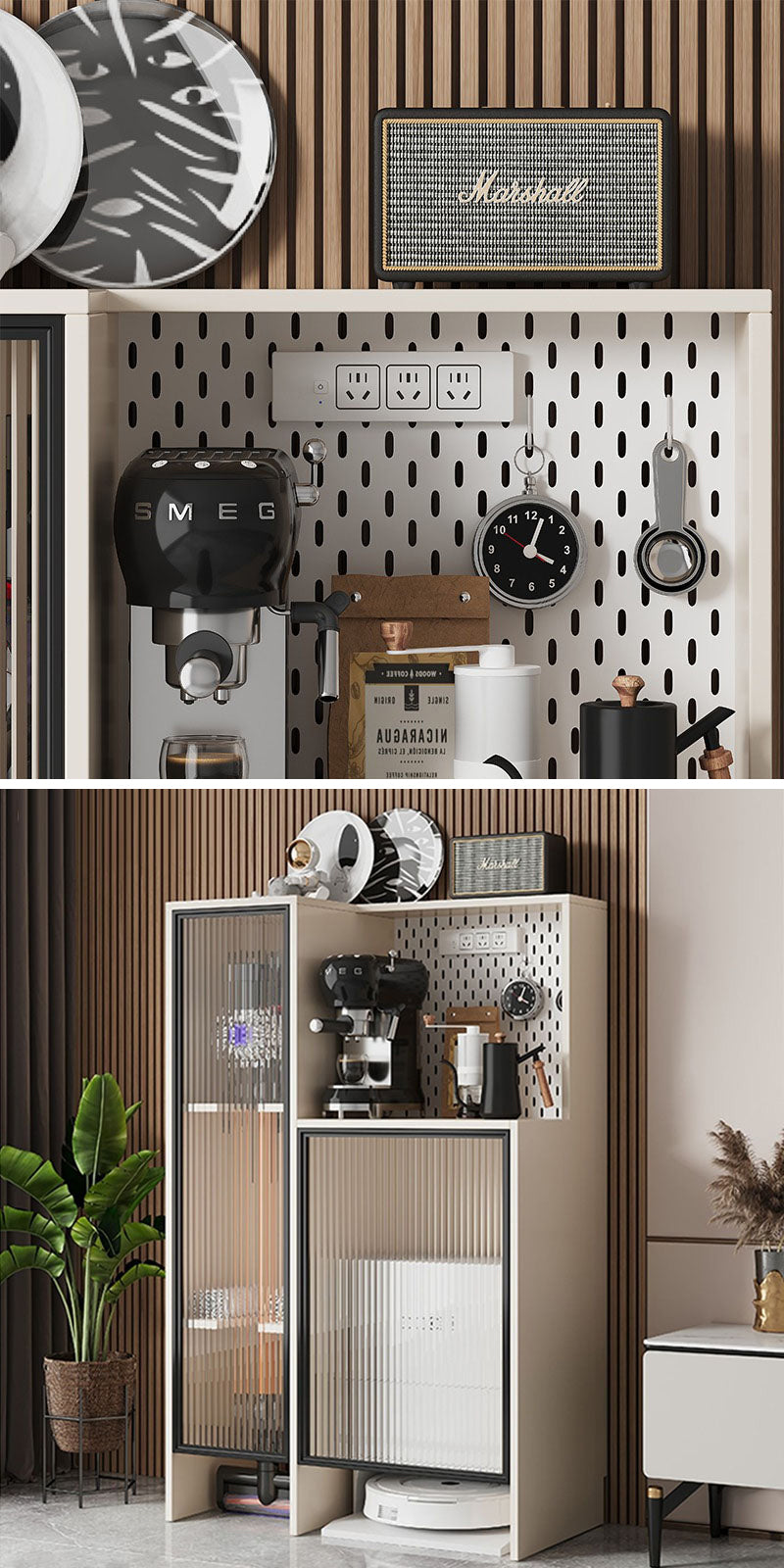 この食器棚は、リビングルーム、ダイニングルーム、玄関ホールなど、どんな空間でも利用可能です。