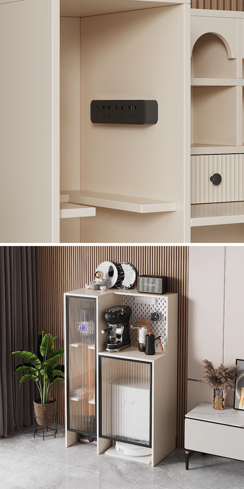 また、それぞれの収納スペースが独立しているため、すっきりとした印象を保ちながら、多様なニーズに応える機能性が魅力です。
