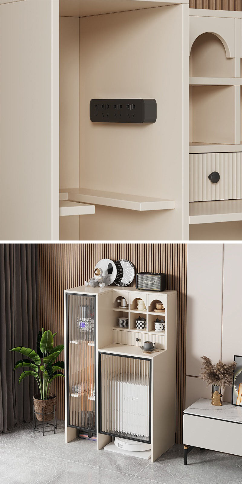 この食器棚は、リビング、ダイニング、キッチン、または玄関に置いても活躍します。
