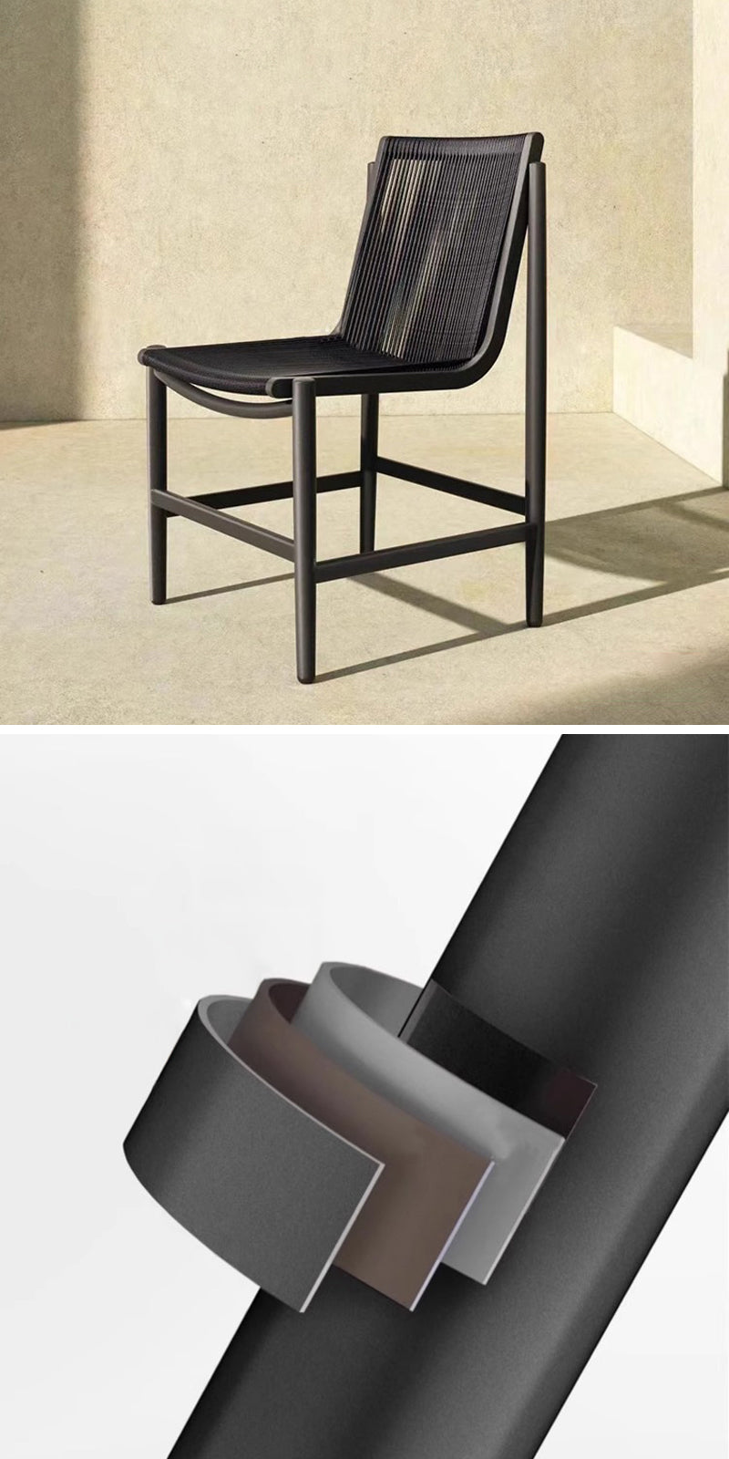 座面部分には、汚れに強いオリフィン素材の編みロープを採用し、防カビ性や耐引裂き性が高く、優美なラインが表現されています。
