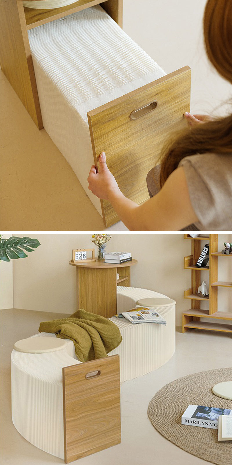 来客時の臨時ベンチとしても、テーブルセットの一部としても活躍します。