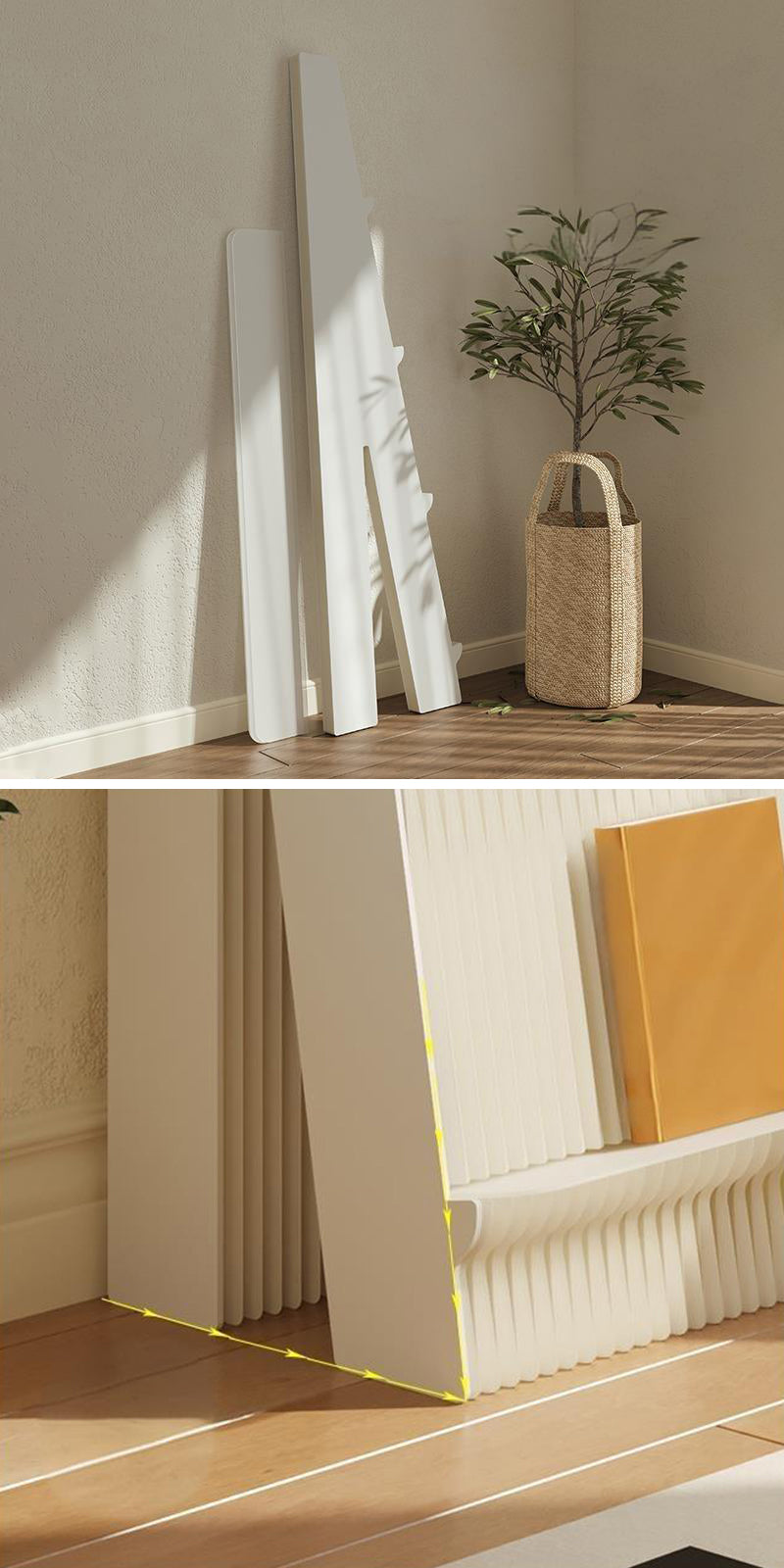 この本棚は、4cmの折りたたみ厚さで設計されており、必要に応じて収納し、部屋の隅にさっと置ける便利な機能を備えています。