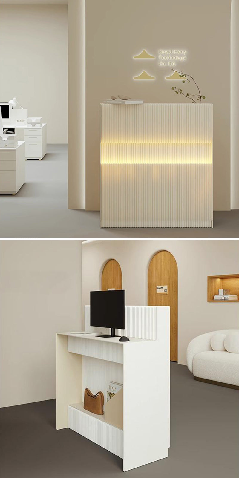 柔らかな明かりがオフィスや受付の雰囲気を一層引き立てます。