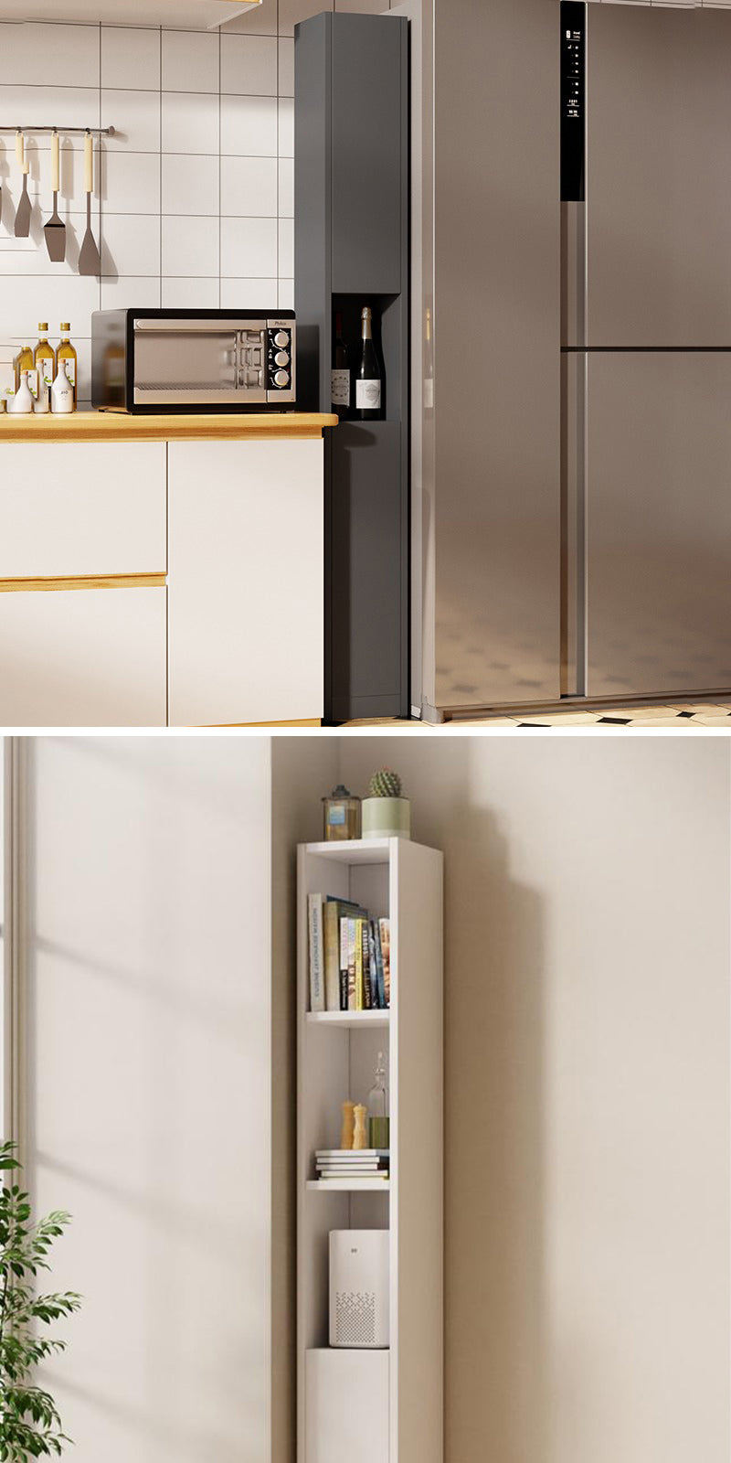 スリムでコンパクトなデザインの飾り棚は、リビングルームや寝室、オフィスの小物収納としても大変便利で、使い勝手の良いアイテムです。