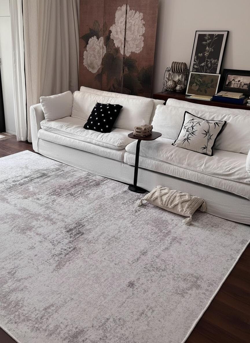 「カシミア質感生地」と「シルク質感生地」素材の主成分は同じくポリエステル繊維ですが、出来上がった生地の感触が異なります。ポリエステル繊維の原材料の加工方法と加工技術により、様々な効果を実現できます。カーペットは使い頻度が高い商品なので、本物のシルクやカシミアよりできあがった場合、耐久性が弱い一方、商品も高価の場合が多いです。その為、こちら「カシミア質感生地」と「シルク質感生地」の商品はコストパフォーマンス的にお得です。